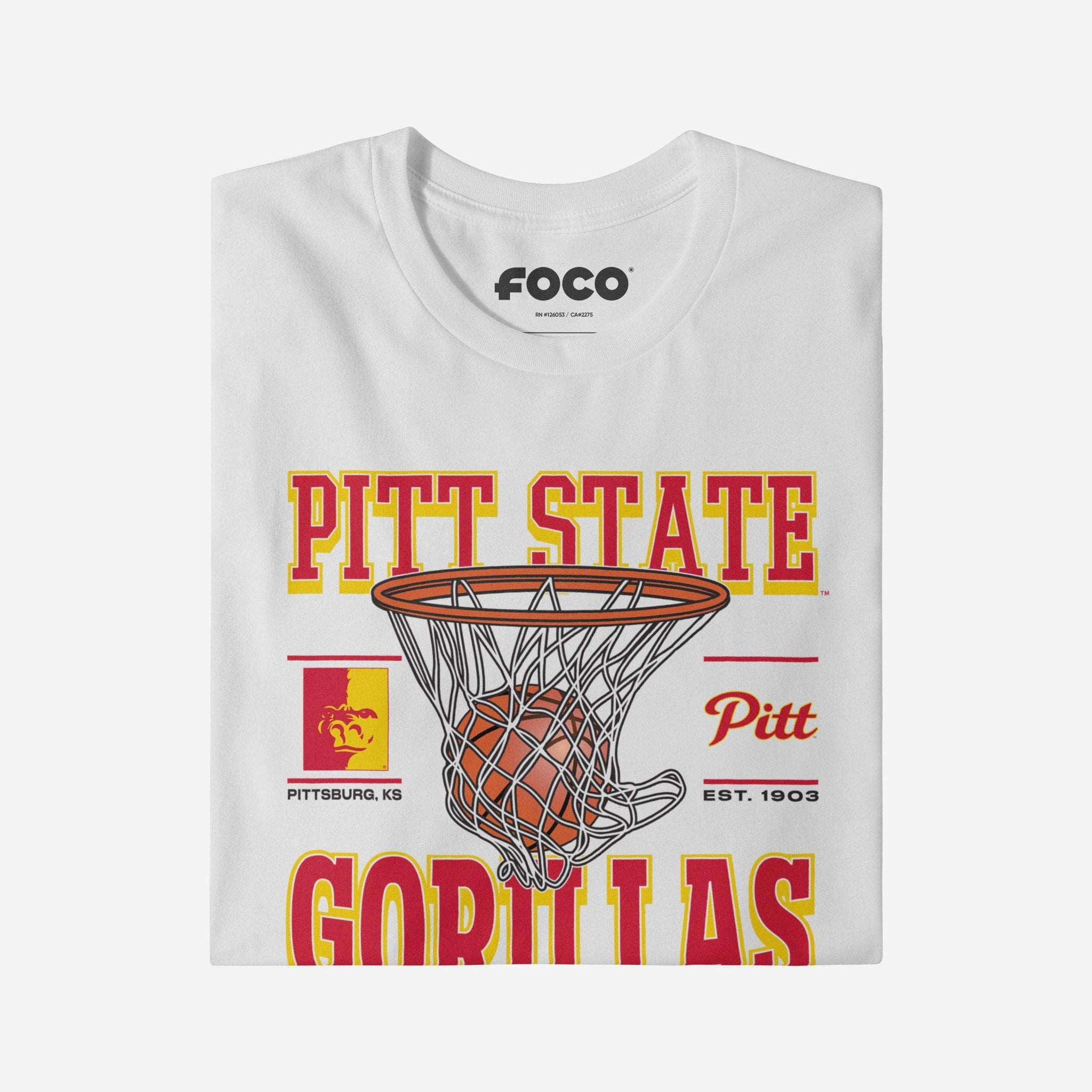 This top features a design that showcases your all-important team colors, a team logo display, a team wordmark name display, year of team establishment, and a basketball swishing through a net display meaning this t-shirt will prove your unmatched dedication to the Pittsburg State Gorillas when you're at the game or watching at home. In other words, this graphic tee is about to be your new favorite teammate.
