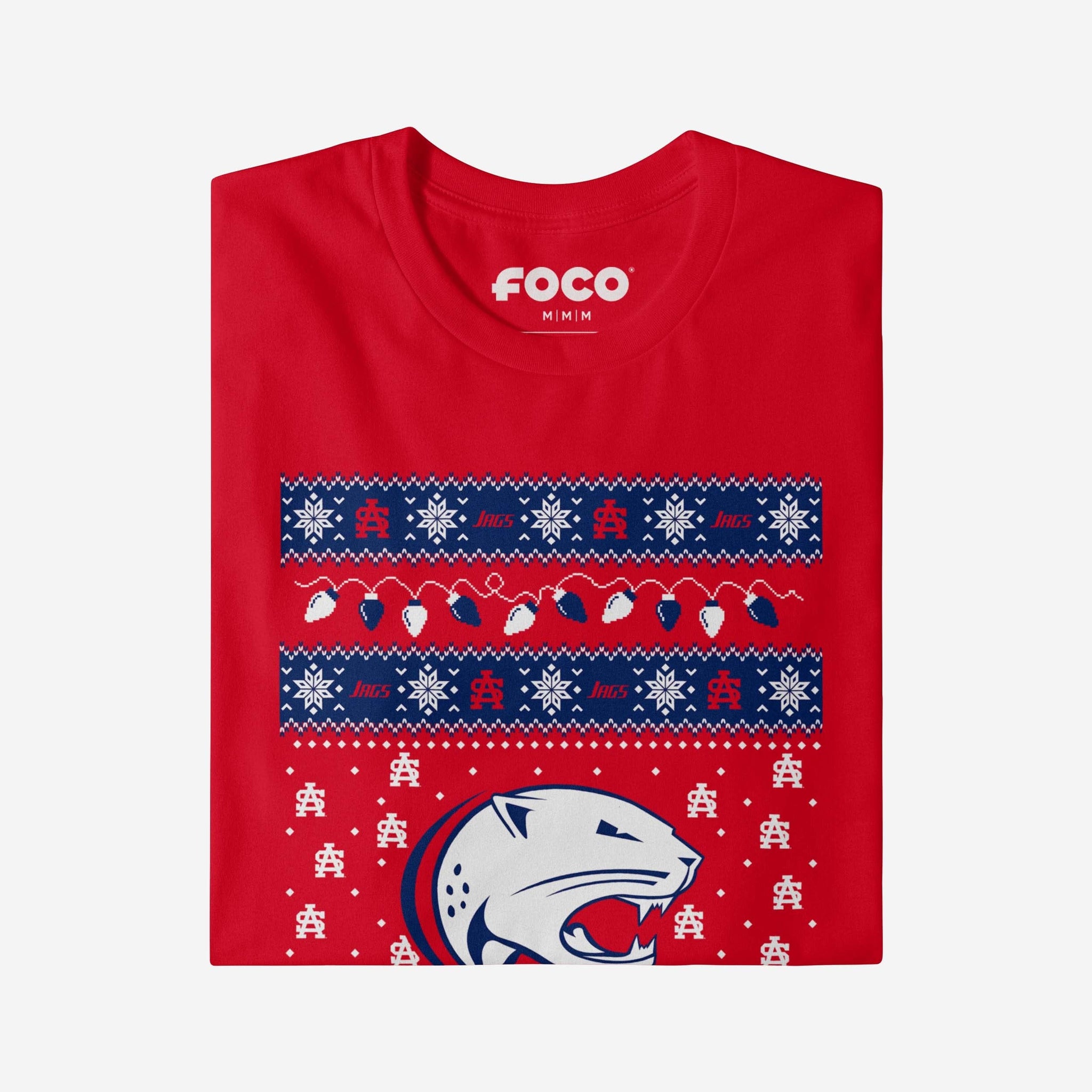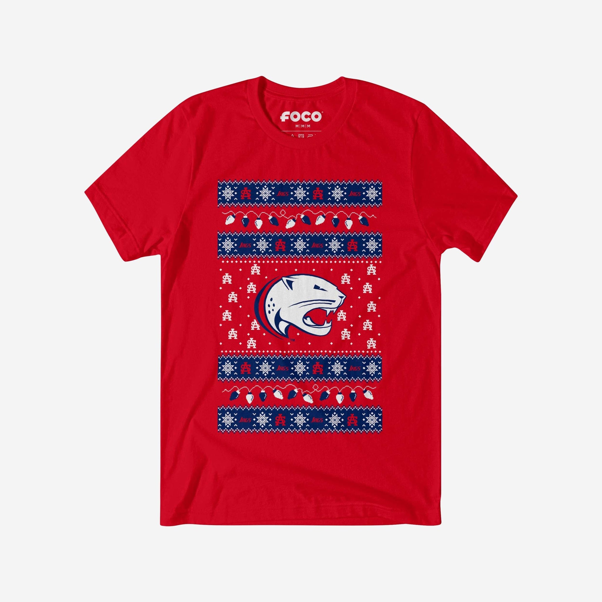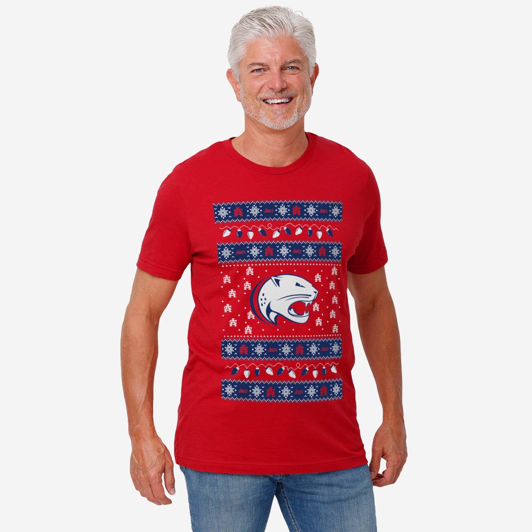 - Design: This traditional team-colored t-shirt features a holiday sweater design with repeat team logos and team-colored Christmas lights displayed on the front so you can show off your festive fandom