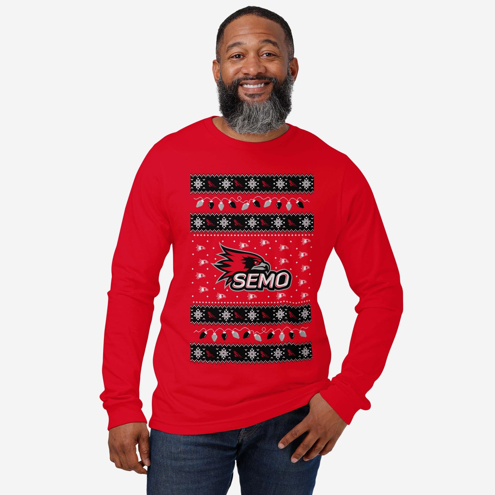 Southeast Missouri State Redhawks Holiday Lights Sweater Long Sleeve T-Shirt FOCO - FOCO.com