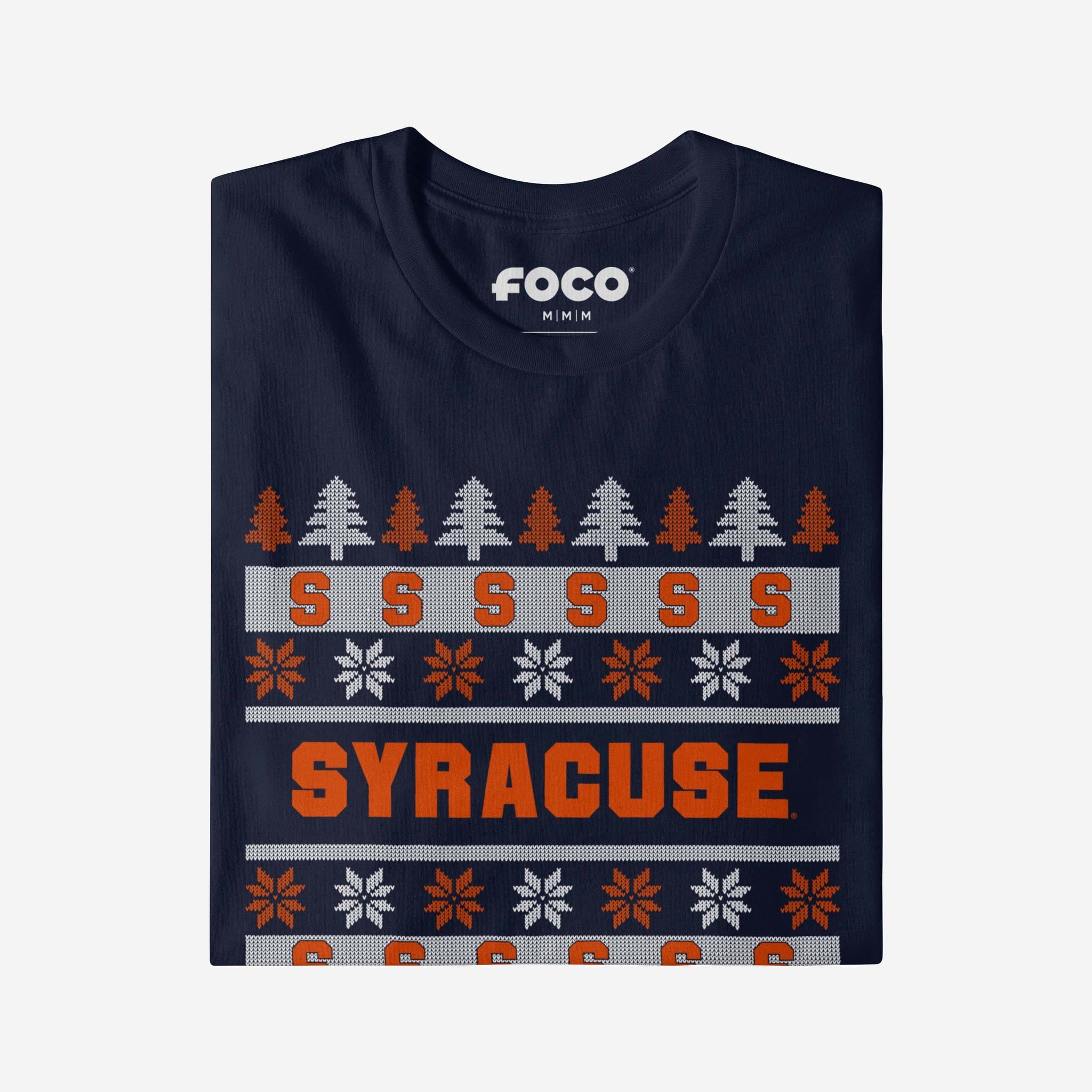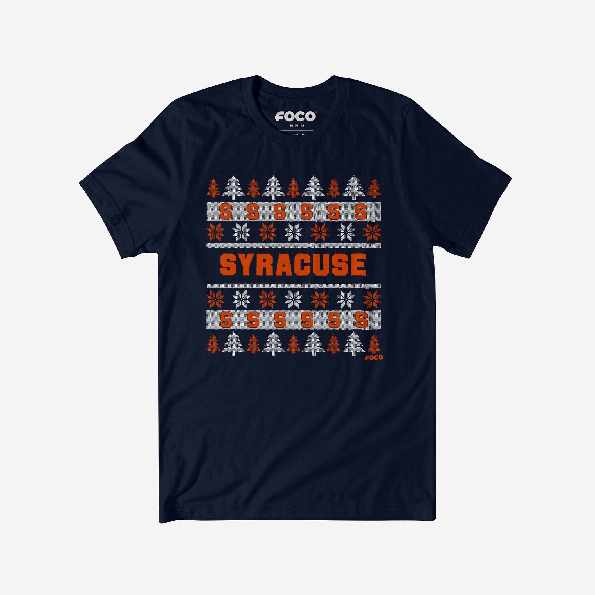 - Festive, team-colored design: This traditional t-shirt shows off the official Syracuse Orange colors in an all-over team-colored design with winter tree and snowflake accents, so you can show your team spirit with pride.