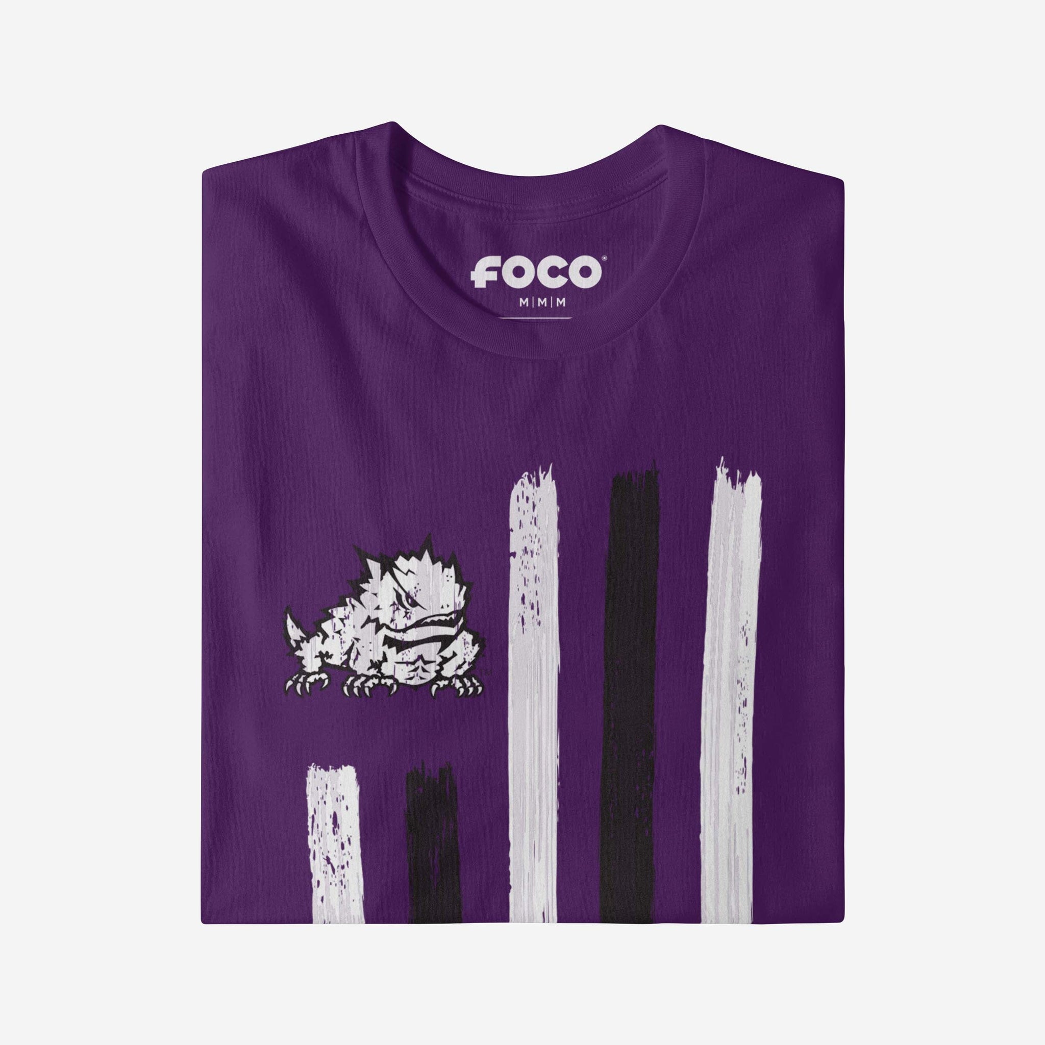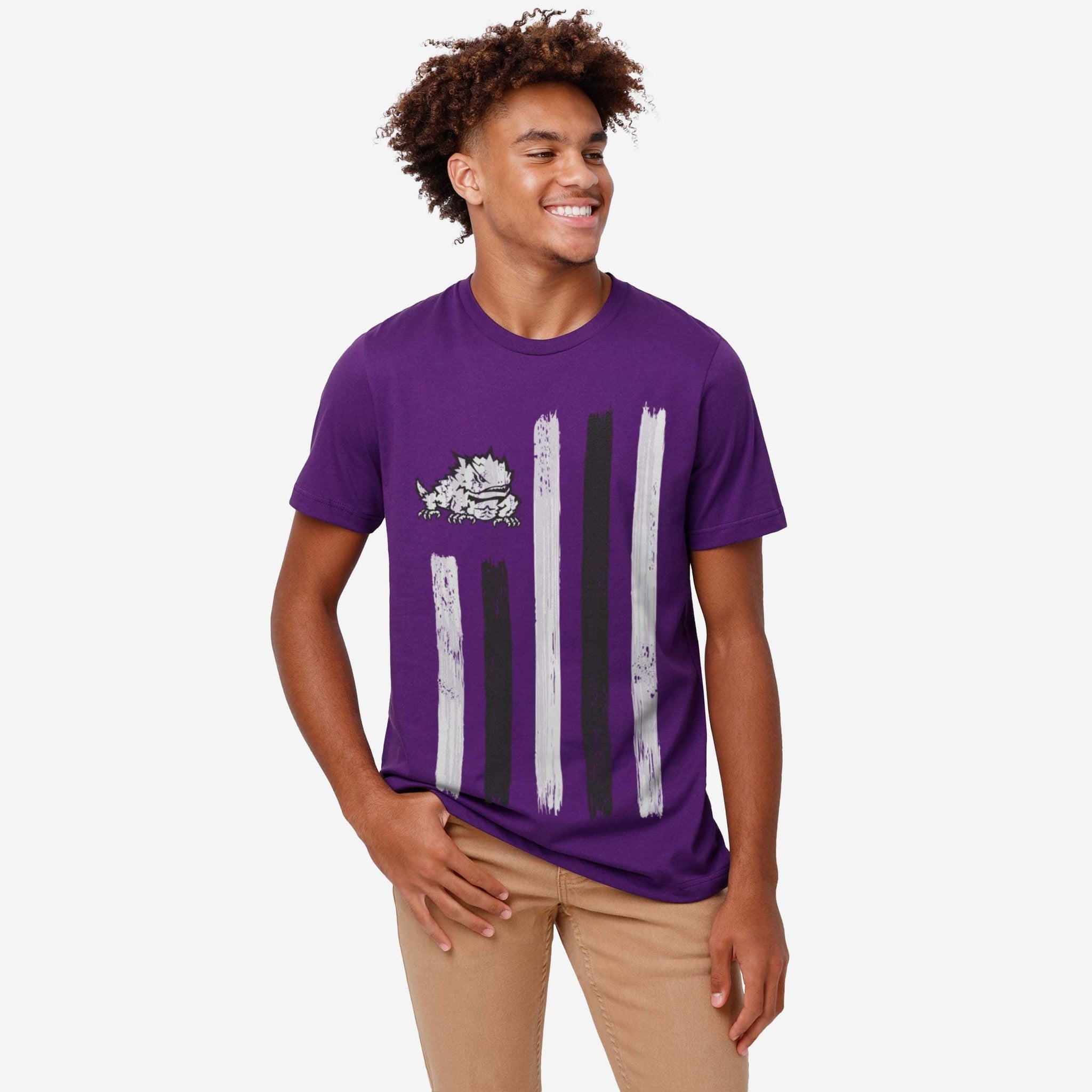 You wave your team flag high on gameday. Now you can wear it too! Look good, feel good, and get ready to let everyone know that you’re the MVP of fan fashion with the TCU Horned Frogs Brushstroke Flag T-Shirt.
