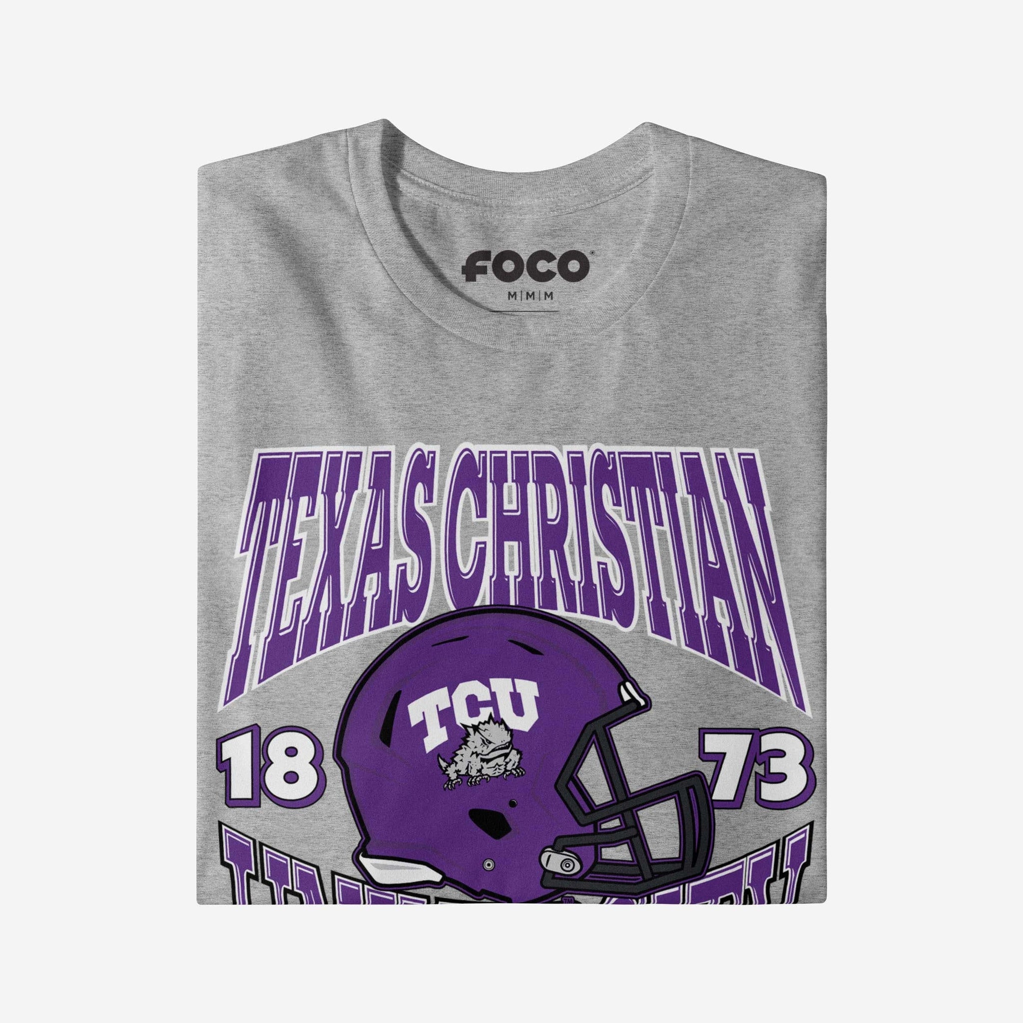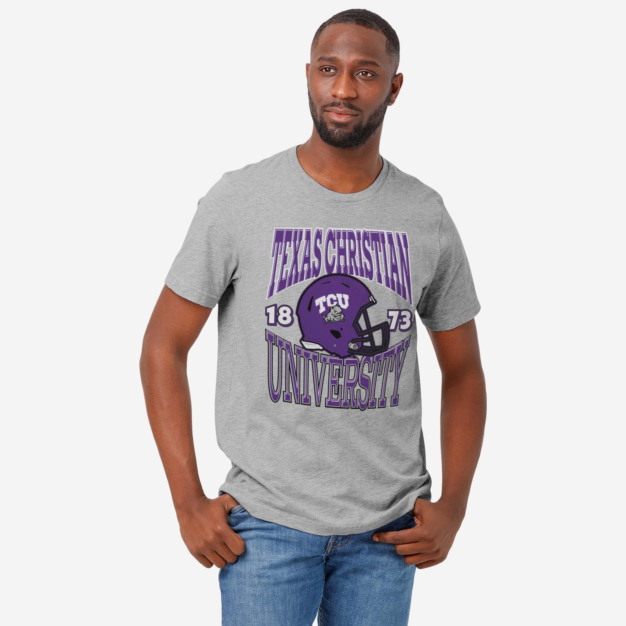 Style worthy of gridiron glory! Whether you’re at the tailgate, in the stands, or watching from the couch, the TCU Horned Frogs Classic Team Helmet T-Shirt will get your head in the game.