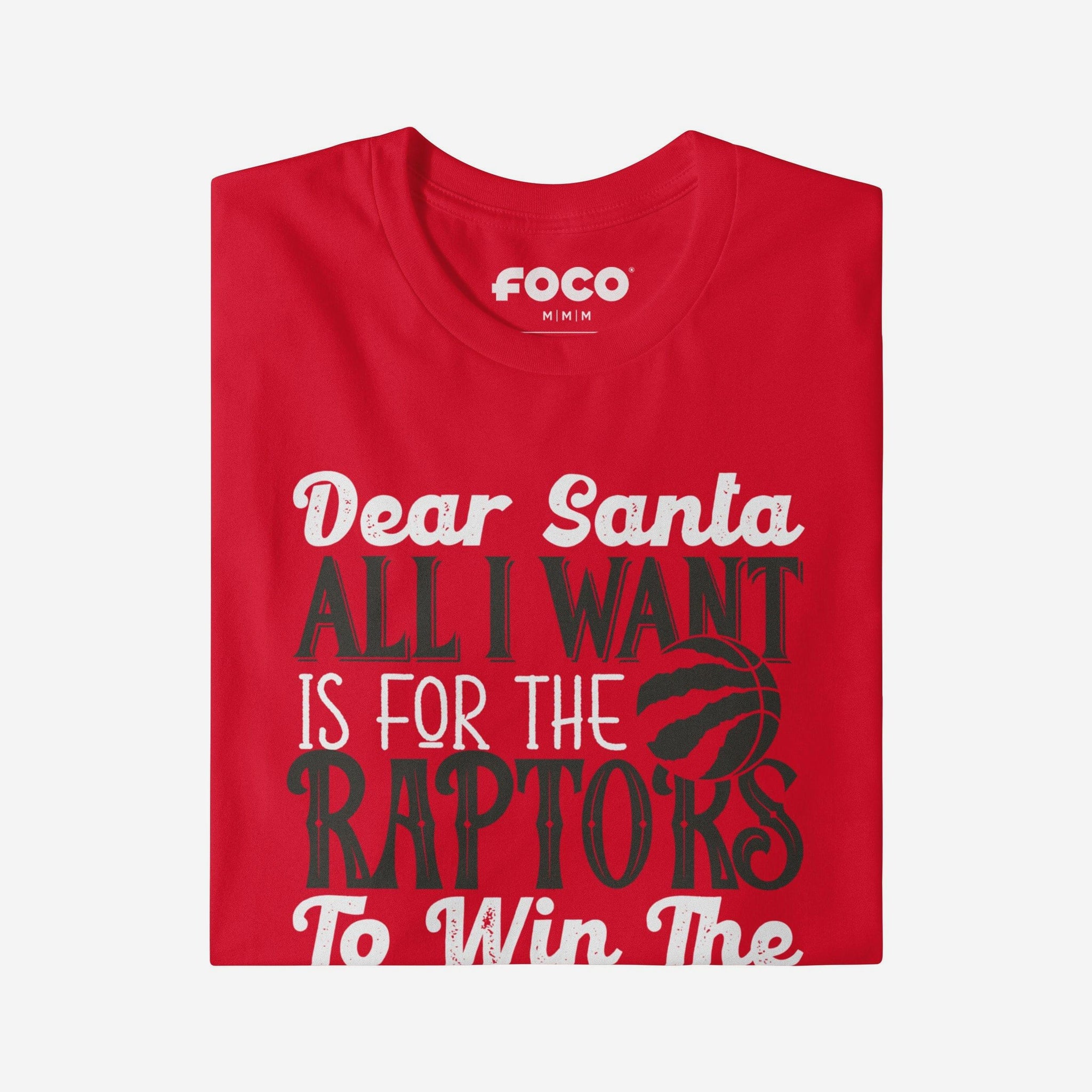 - Festive, team-colored design: This traditional t-shirt shows off the official Toronto Raptors colors in an all-over design with a festive message to Santa, so you can combine your team spirit with holiday spirit.