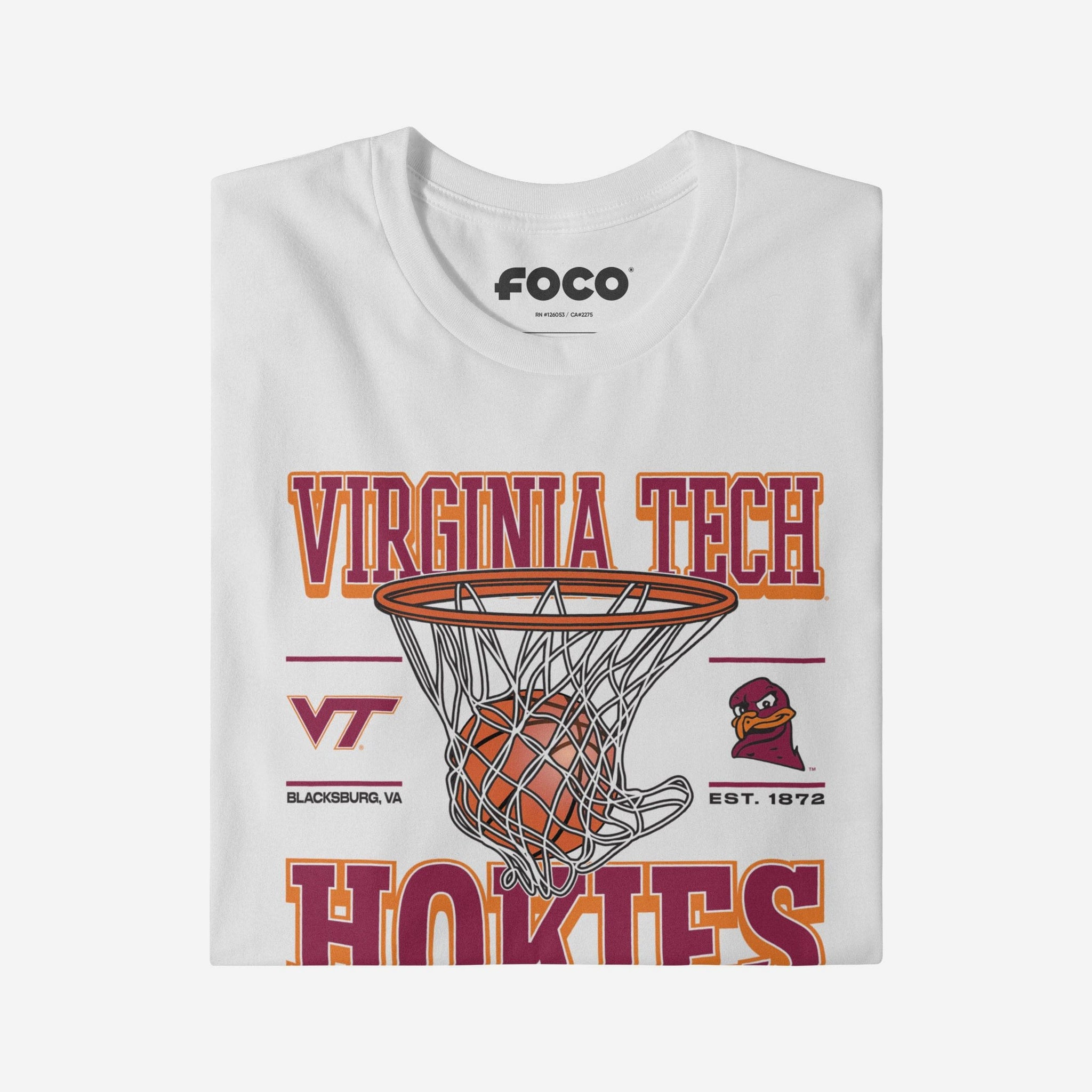 This top features a design that showcases your all-important team colors, a team logo display, a team wordmark name display, year of team establishment, and a basketball swishing through a net display meaning this t-shirt will prove your unmatched dedication to the Virginia Tech Hokies when you're at the game or watching at home. In other words, this graphic tee is about to be your new favorite teammate.