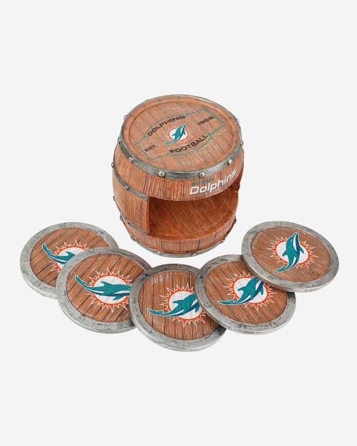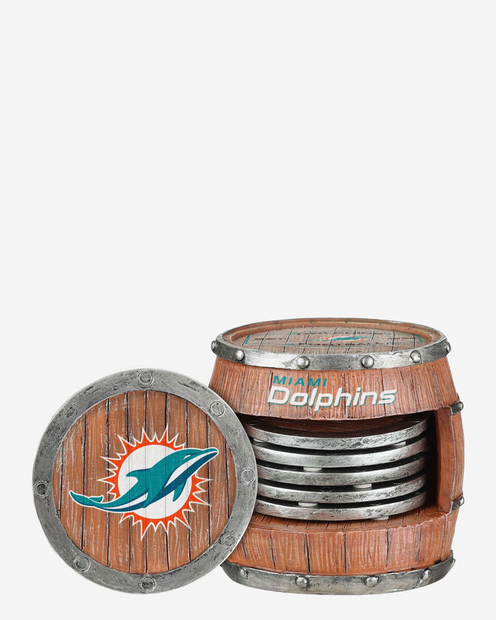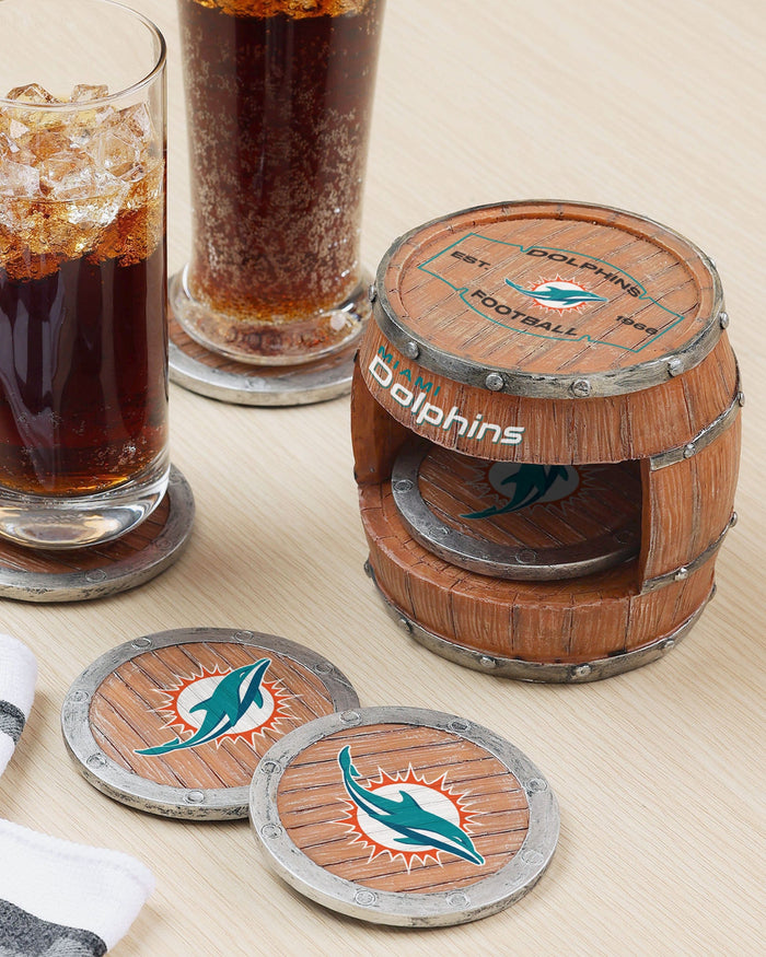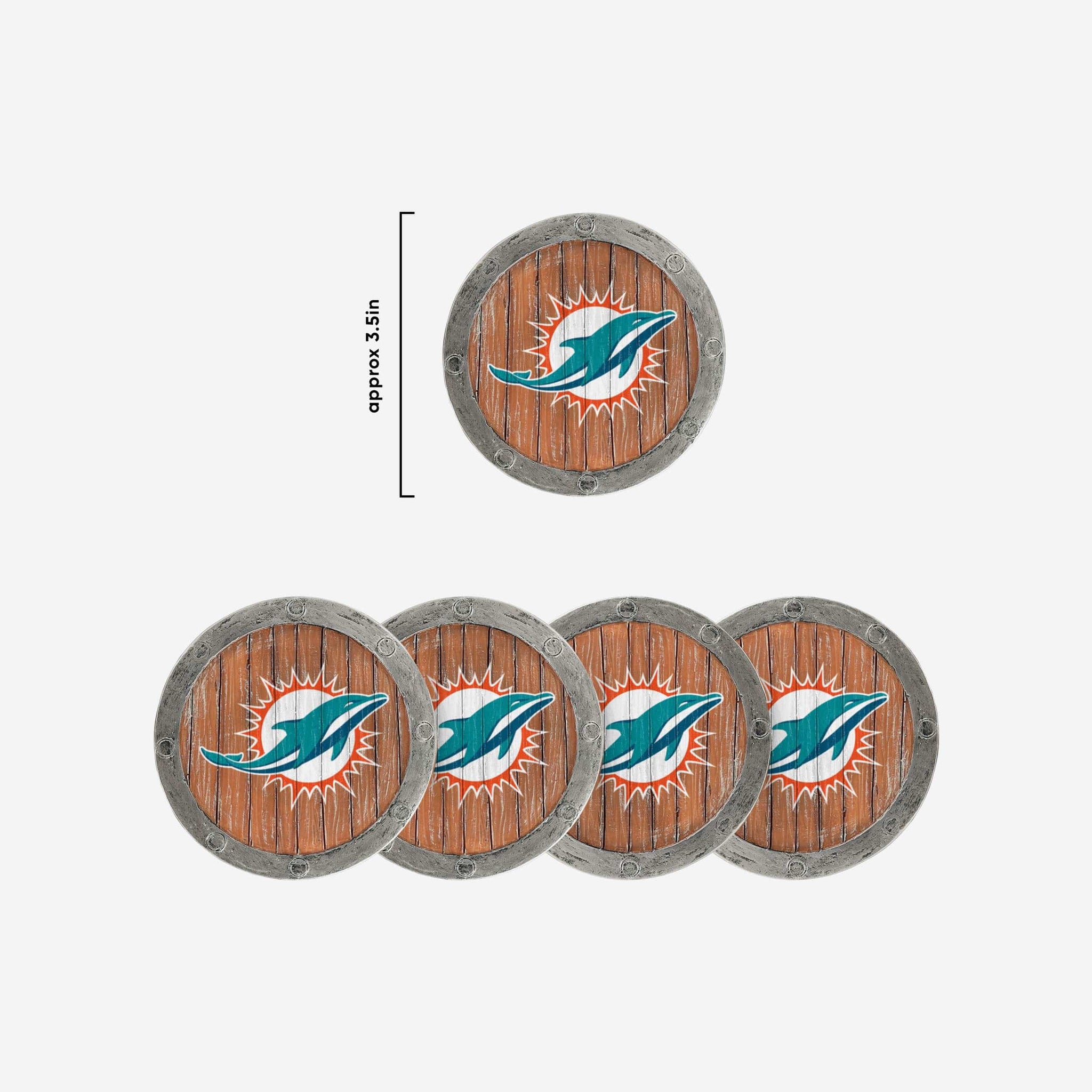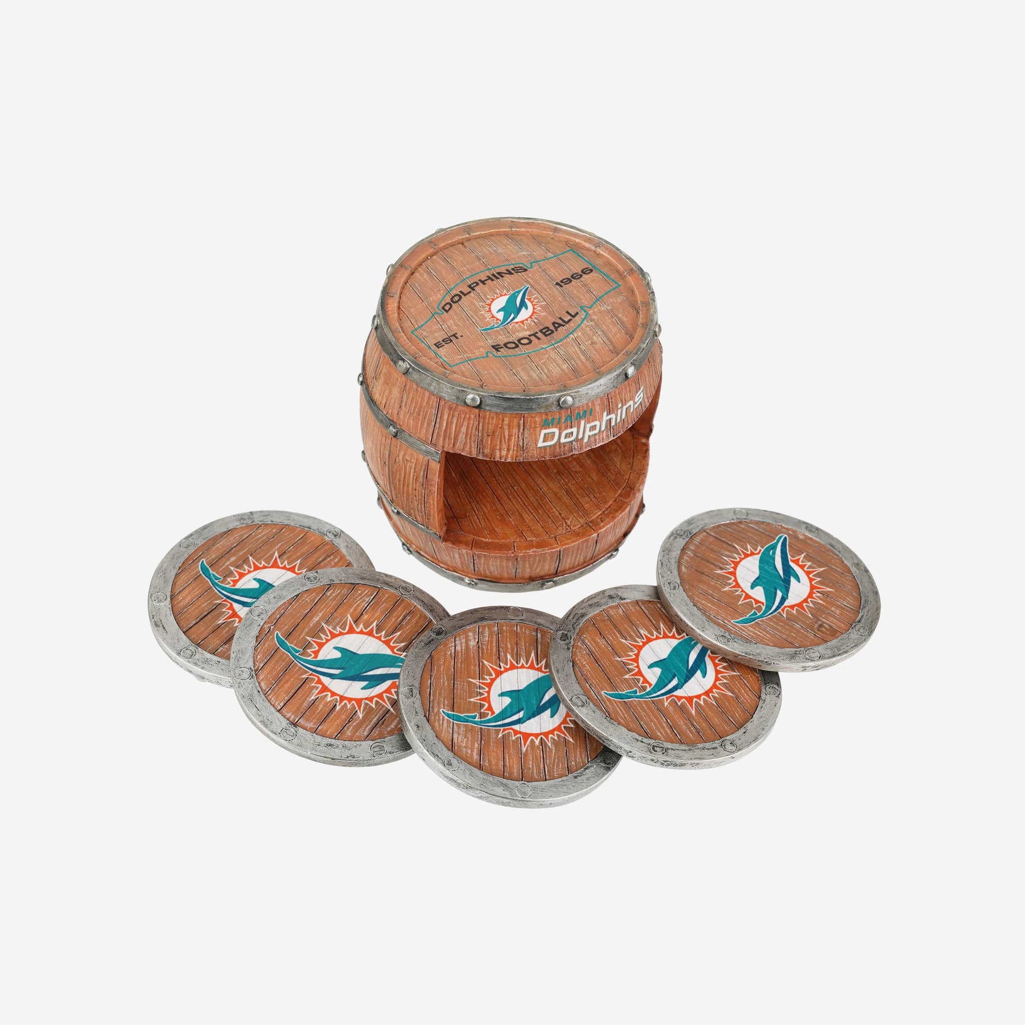 Championship rings? Yay! Unsightly rings on the coffee table? Boo! Break out the beverages worry-free and get ready for every watch party with this Miami Dolphins 5 Pack Barrel Coaster Set.