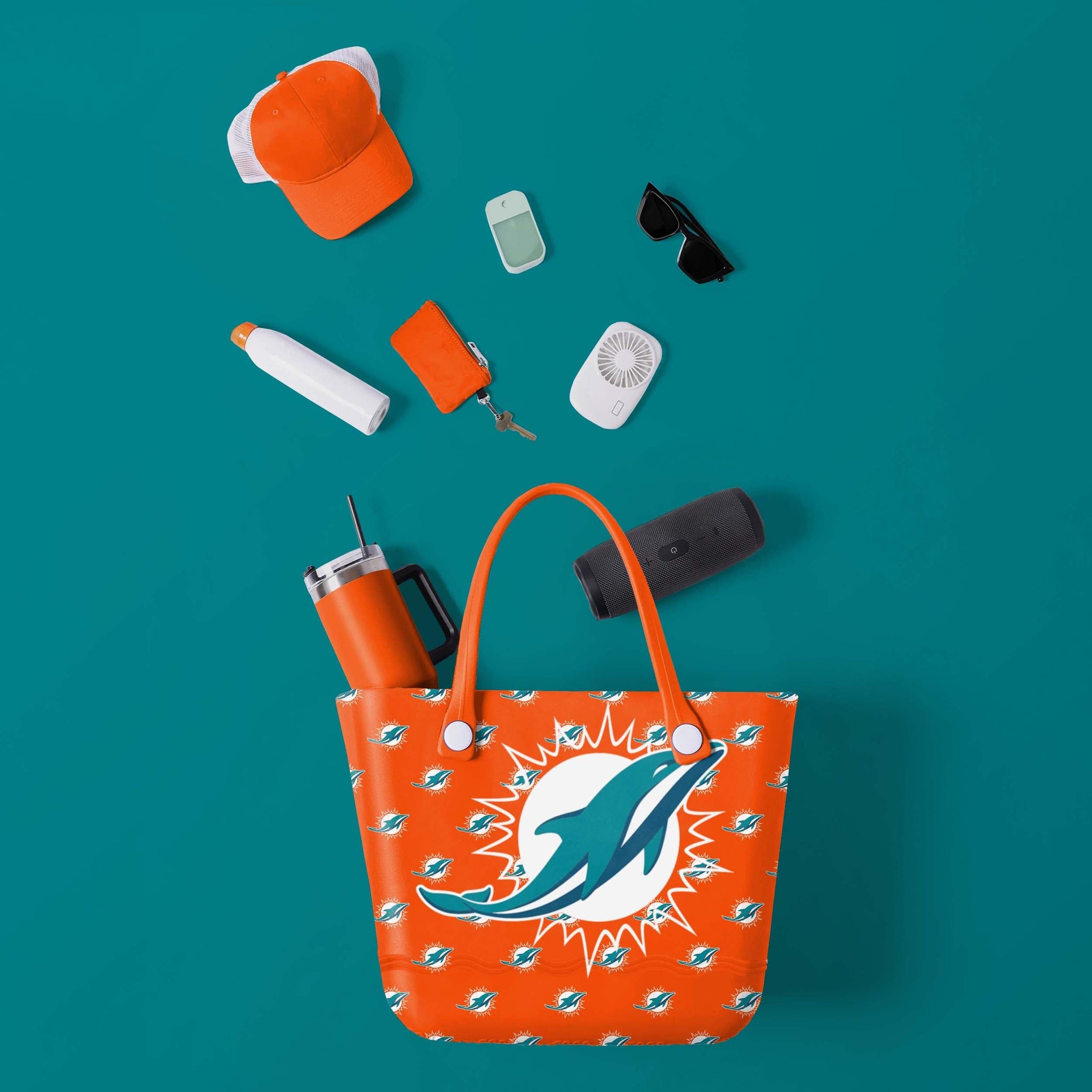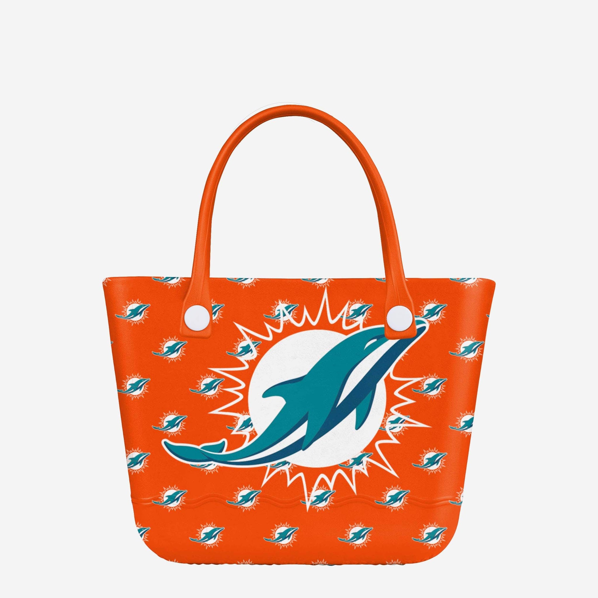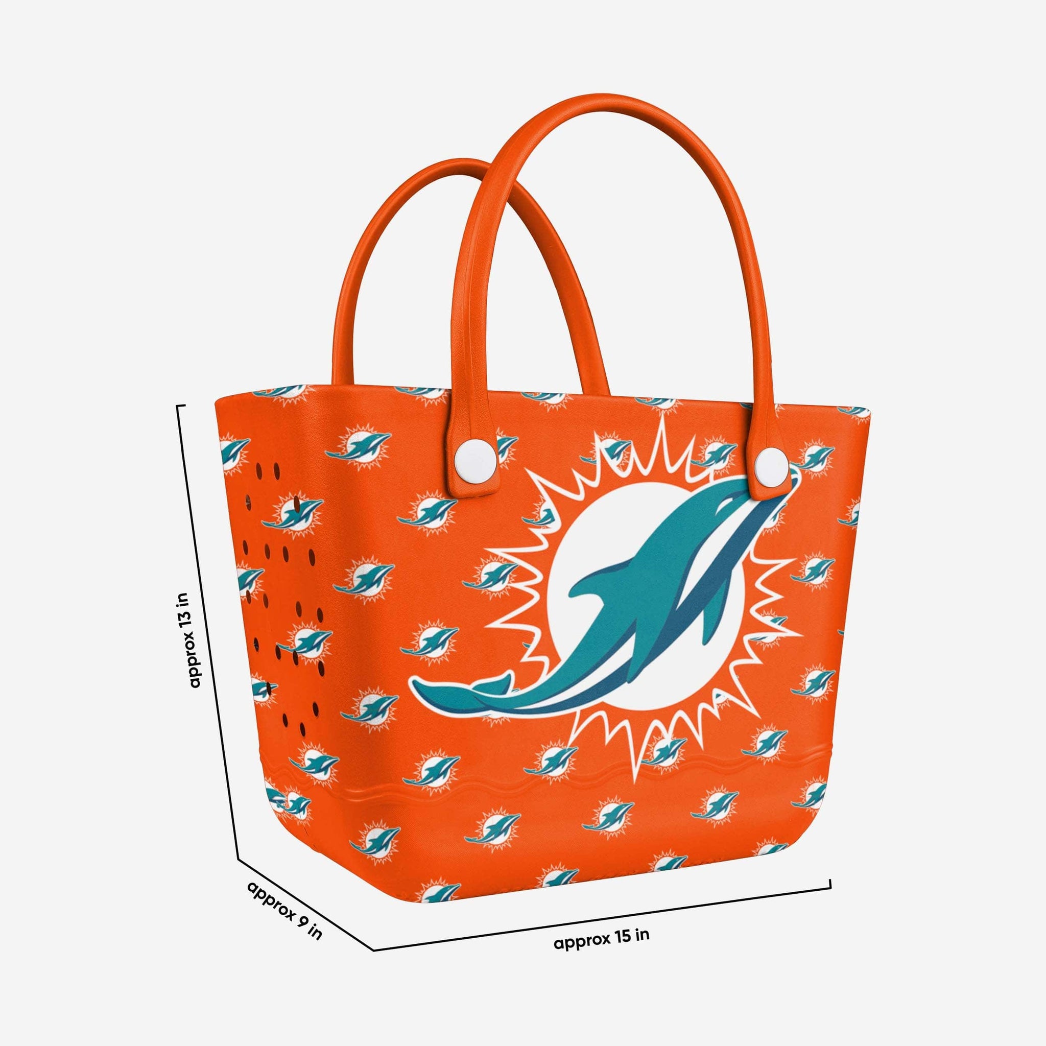 Looking for a bag as durable and dependable as your team spirit? You've found it. Whether you're running the tailgate, hitting the beach, or going on any adventure, pack up your fandom and take it on the go with this Miami Dolphins Big Logo Mini Print Tailgate Tote Bag.