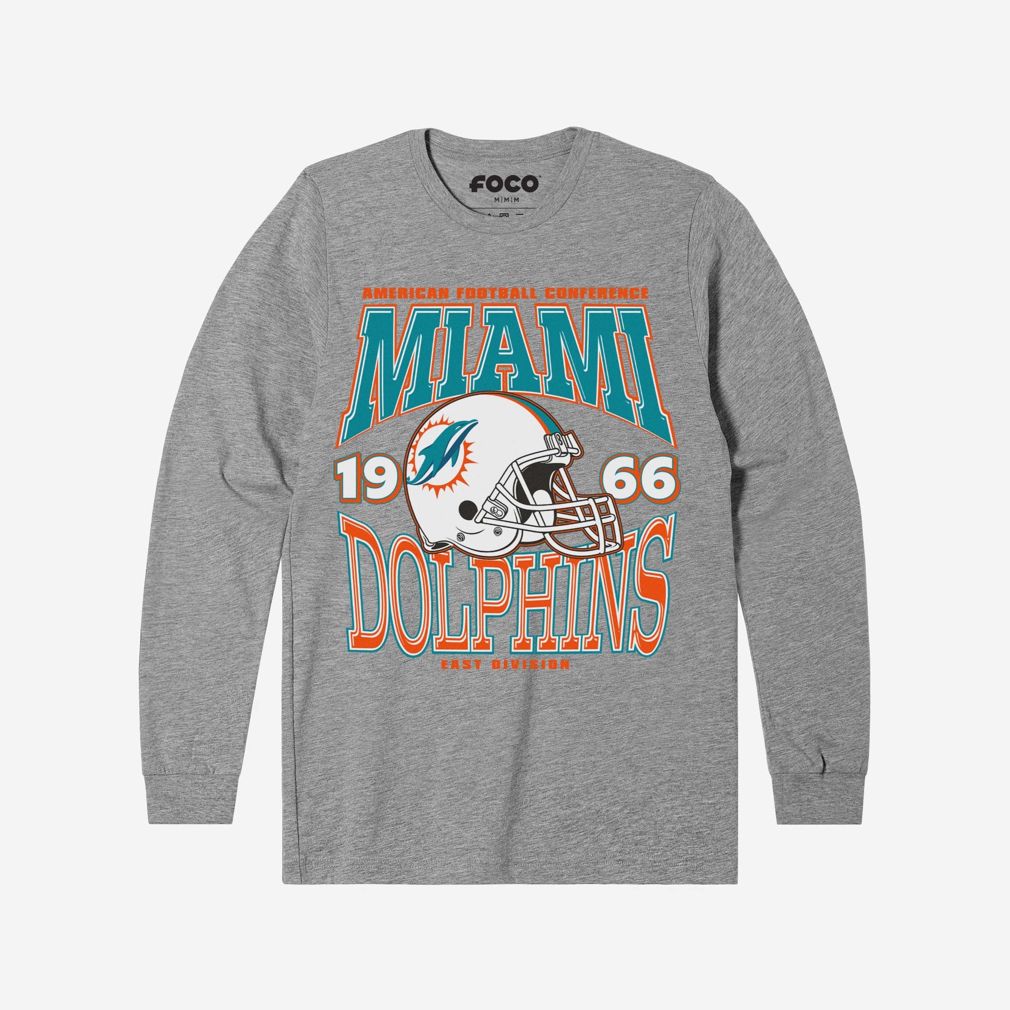 Long sleeves to keep you warm. Sleek style to keep you cool. This Miami Dolphins Classic Team Helmet Long Sleeve T-Shirt will get your head in the game on gameday and every day.