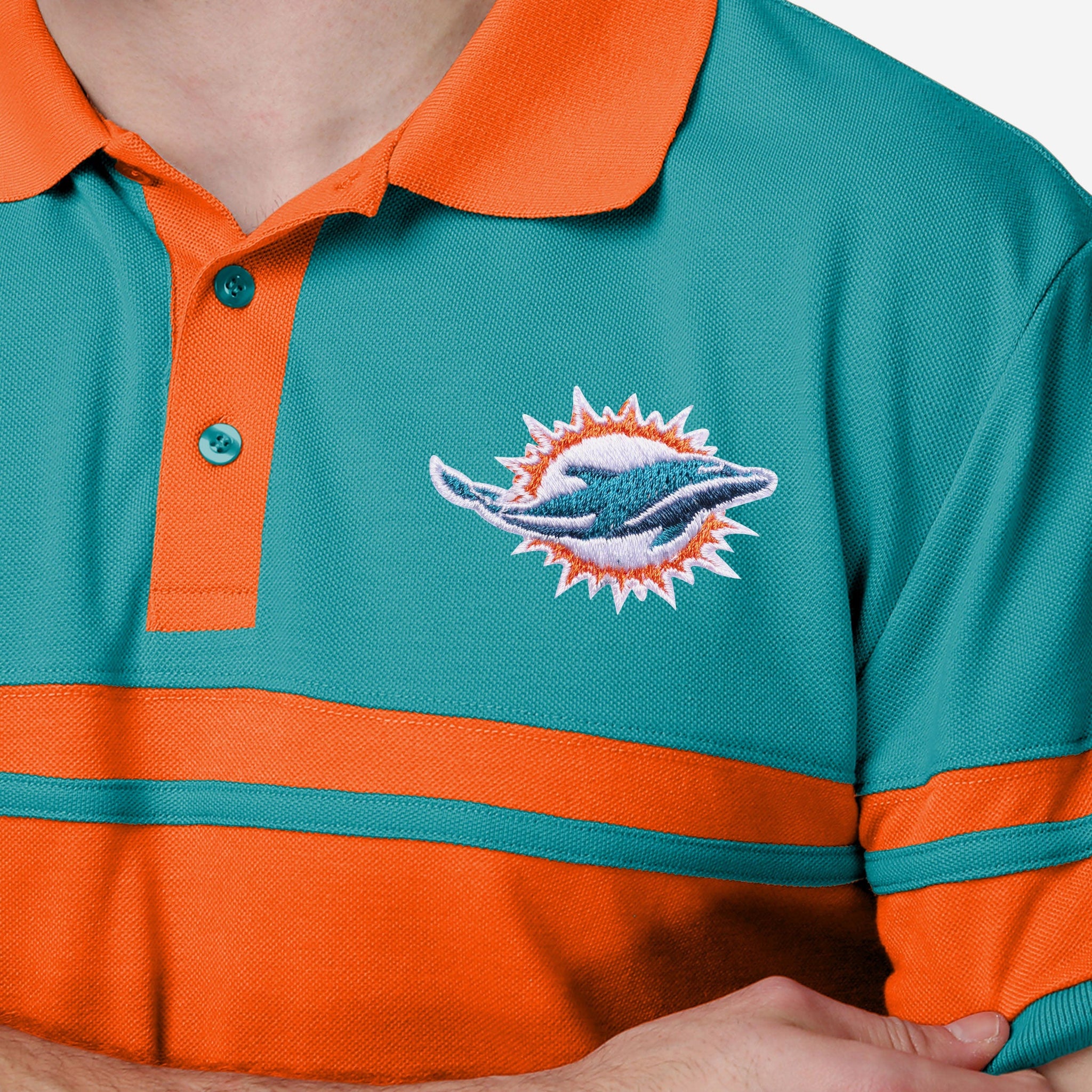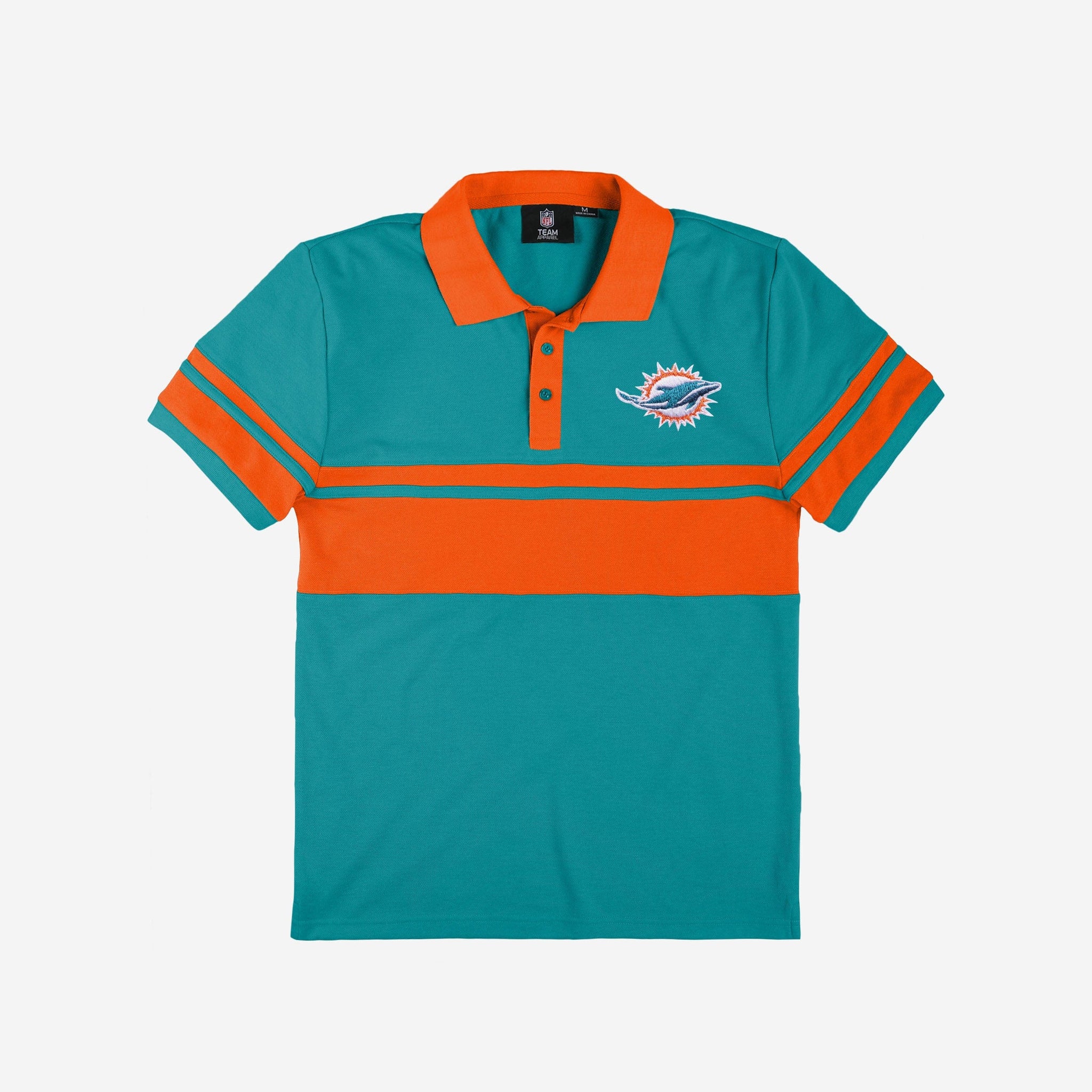 You take your team spirit with you wherever you go, including the golf course. This Miami Dolphins Cotton Stripe Polo shows off your team spirit so boldly that it should distract your friends from the fact that you just double bogeyed.