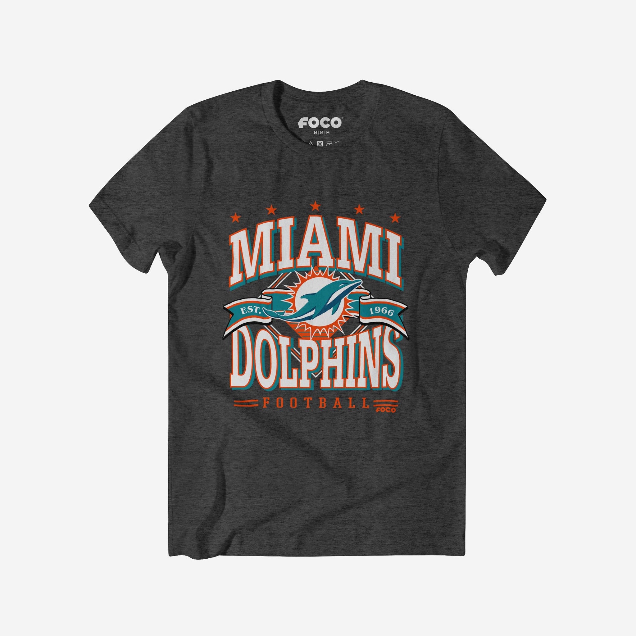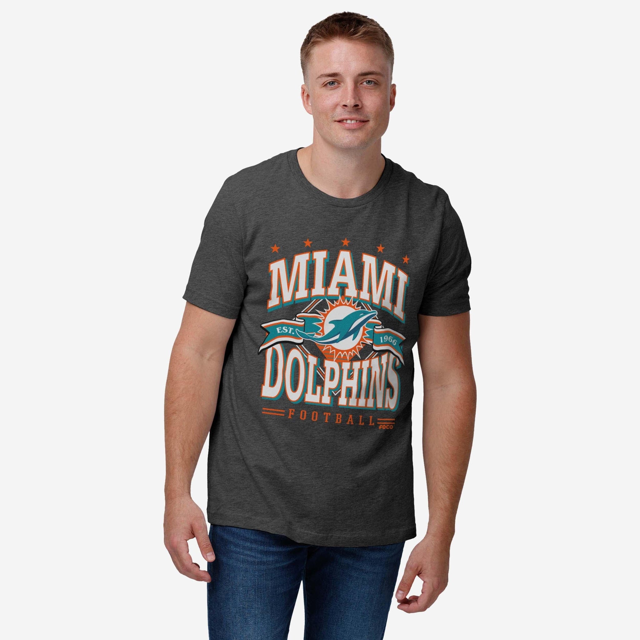 Miami Dolphins Established Banner T-Shirt FOCO Dark Grey Heather S - FOCO.com