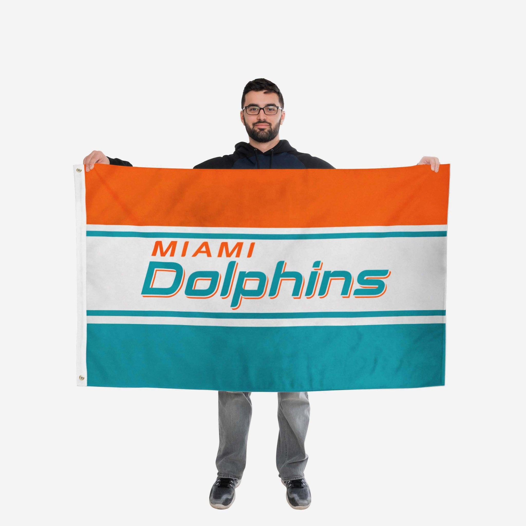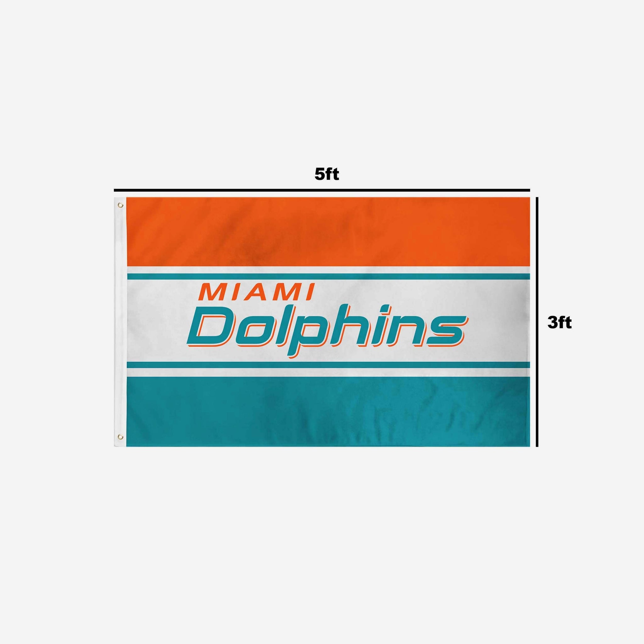 "What team do you root for?" That's not a question you're going to hear often when you've got this Miami Dolphins Horizontal Flag. Plant your flag as the biggest and best fan around.