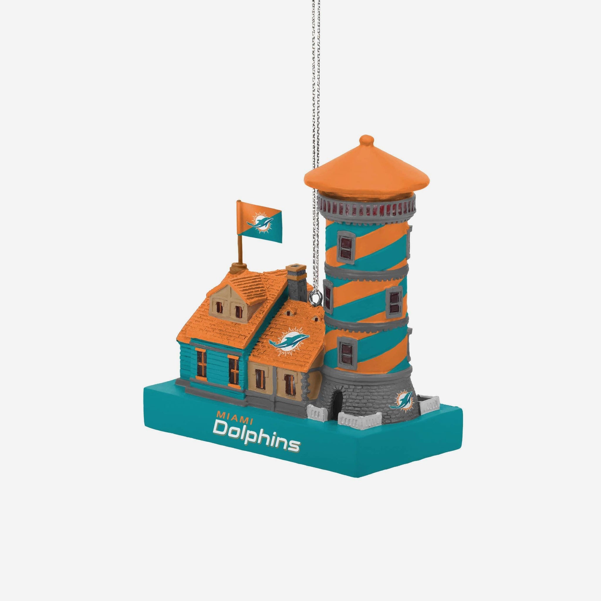 Bold, bright, and ready to guide your holiday spirit home. The Miami Dolphins Light Up Resin Lighthouse Ornament is your beacon of fandom this season!