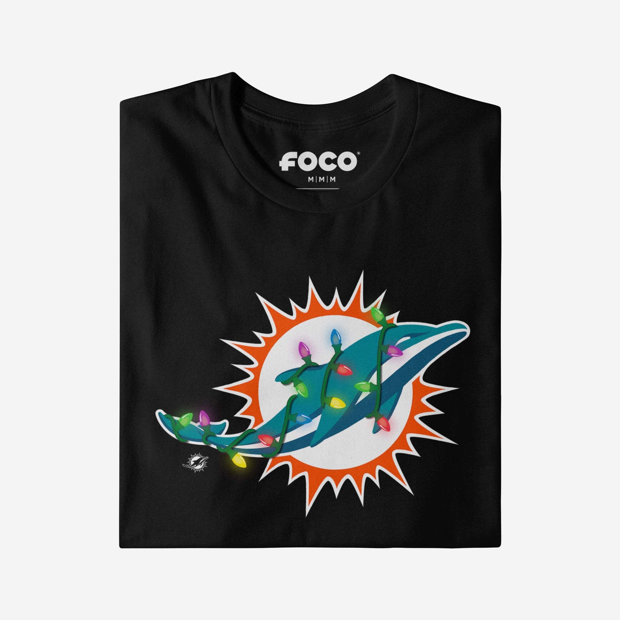 Miami Dolphins Primary Logo Holiday Lights Long Sleeve T-Shirt FOCO S - FOCO.com