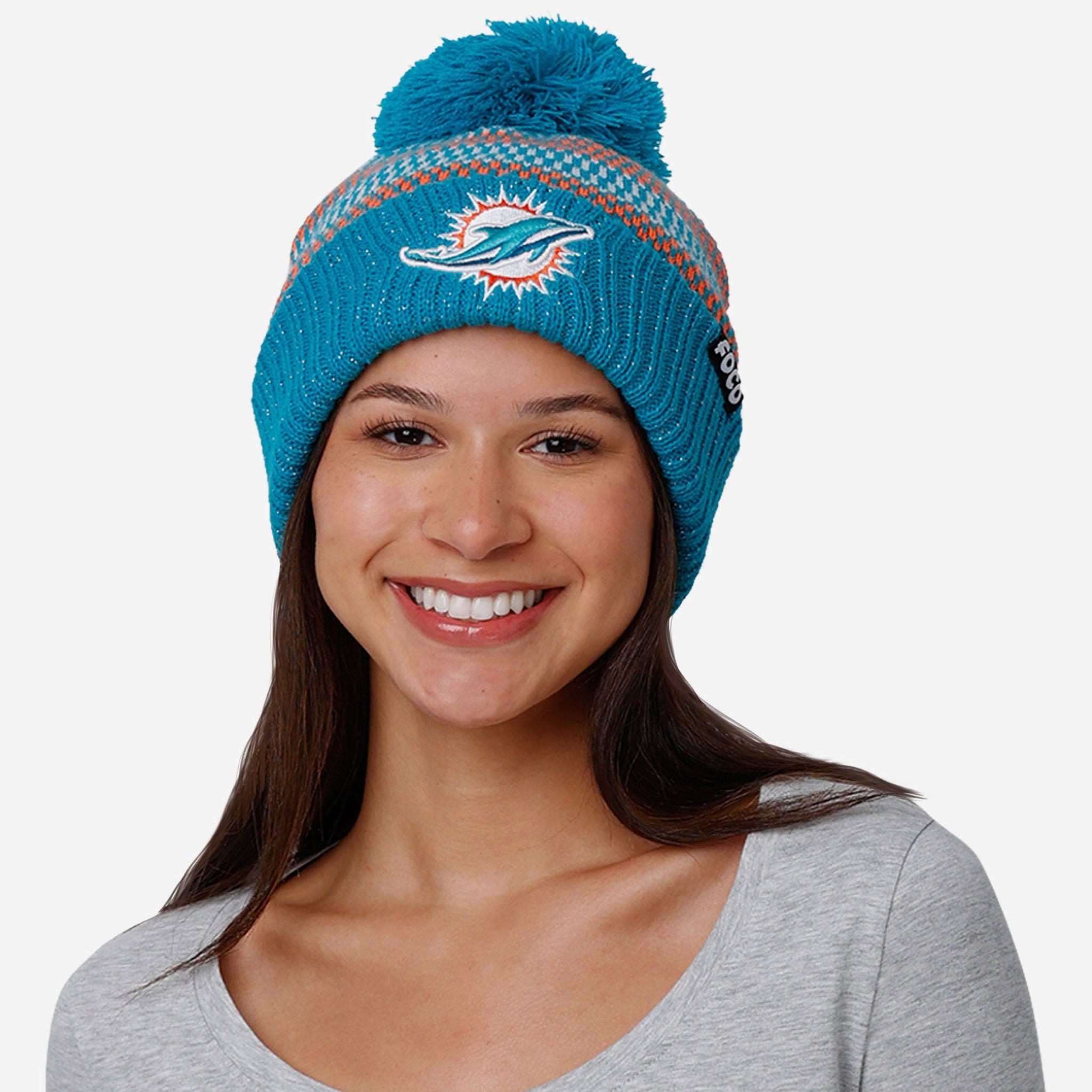 Putting together the ultimate fit for the tailgate and beyond? Make sure to get your head in the game with the Miami Dolphins Women's Cozy Knit Metallic Thread Pom Beanie!