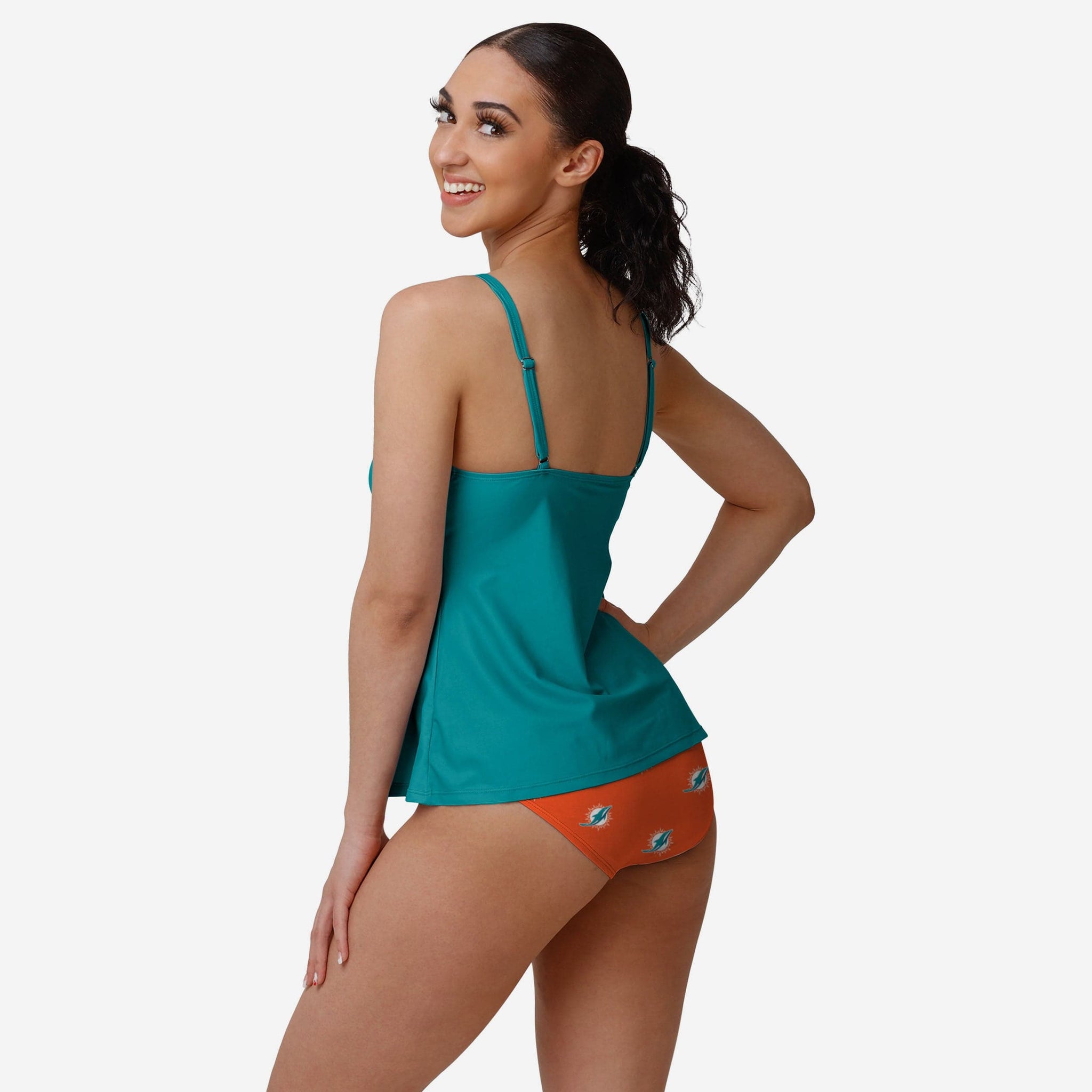 Turn the heat up on your fashion game while you keep cool by the pool in this Miami Dolphins Women's Summertime Solid Tankini!