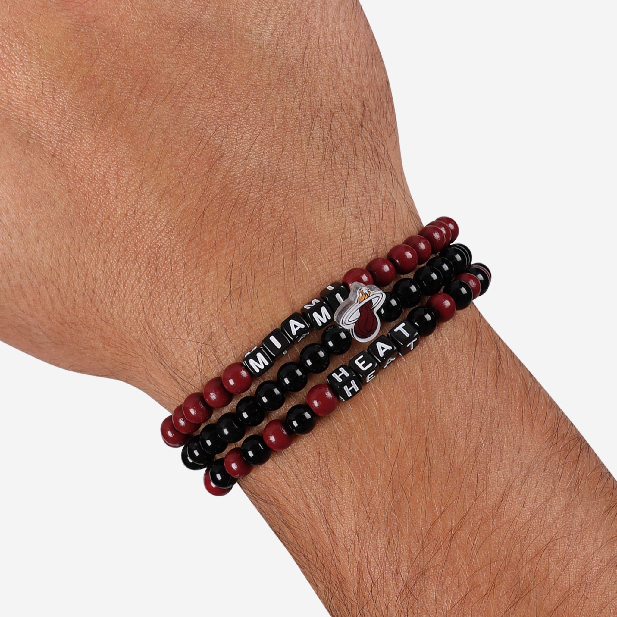 A whole new way to rep the team in style is here. Step up your fan fashion sense with this Miami Heat 3 Pack Beaded Friendship Bracelet. These matching friendship bracelets have an all-over team-colored design and team logo displays, which makes them the perfect way to show your support for the Miami Heat on gamedays and every day in between.