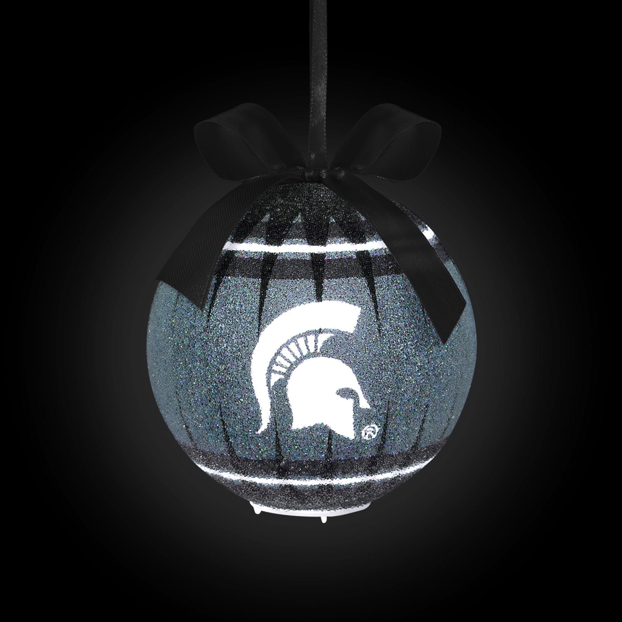 Light up the holidays with a little team spirit! Your Christmas tree will be ready to shine bright with this Michigan State Spartans LED Shatterproof Ball Ornament at your disposal!