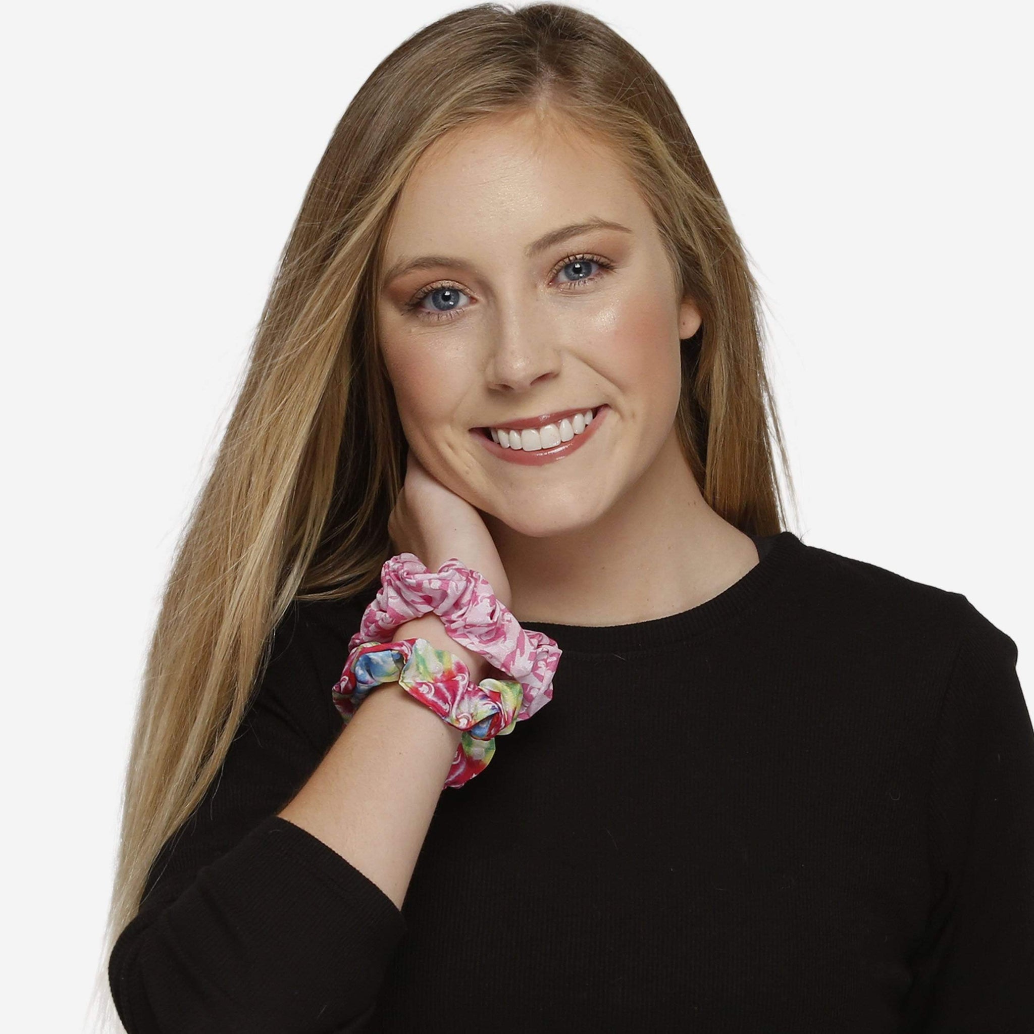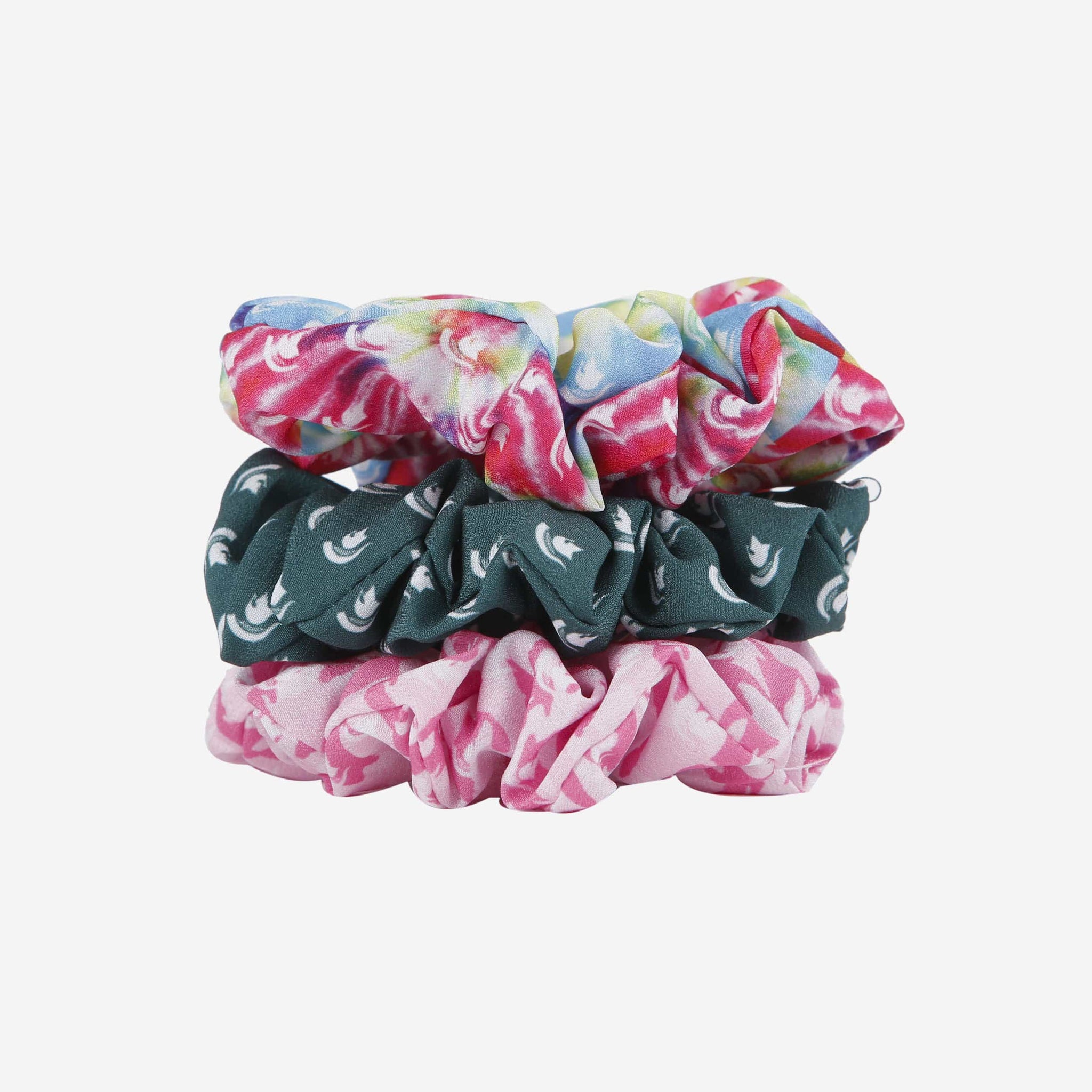 • Three-pack of hair scrunchies with unique designs, because three scrunchies are better than one