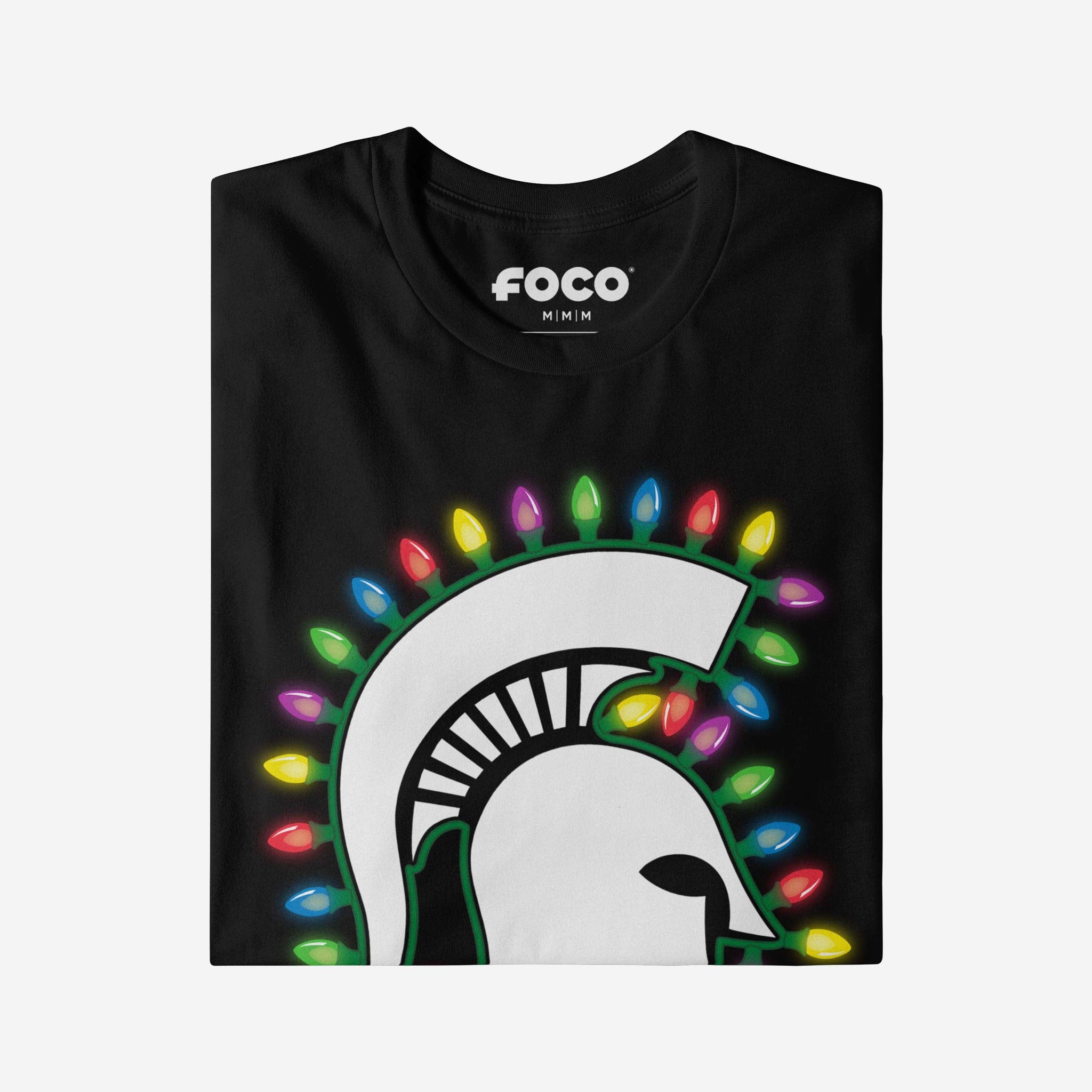 Michigan State Spartans Primary Logo Holiday Lights T-Shirt FOCO - FOCO.com