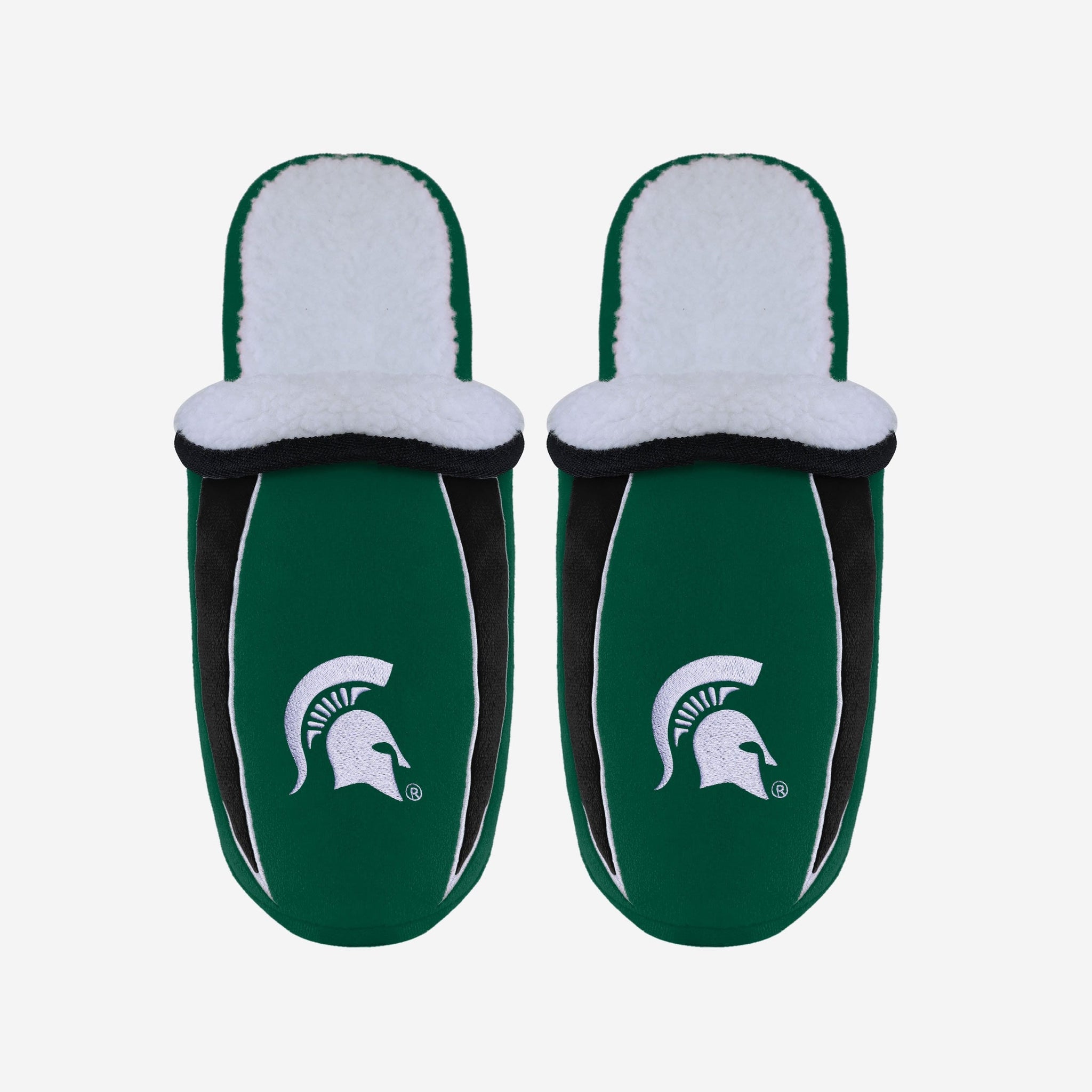 Kicking back, putting your feet up and watching the big game on the big screen in the fancave is great. You know what's even greater? Doing all that while wearing these Michigan State Spartans Men's Sherpa Slide Slippers. Step into some serious fan comfort.
