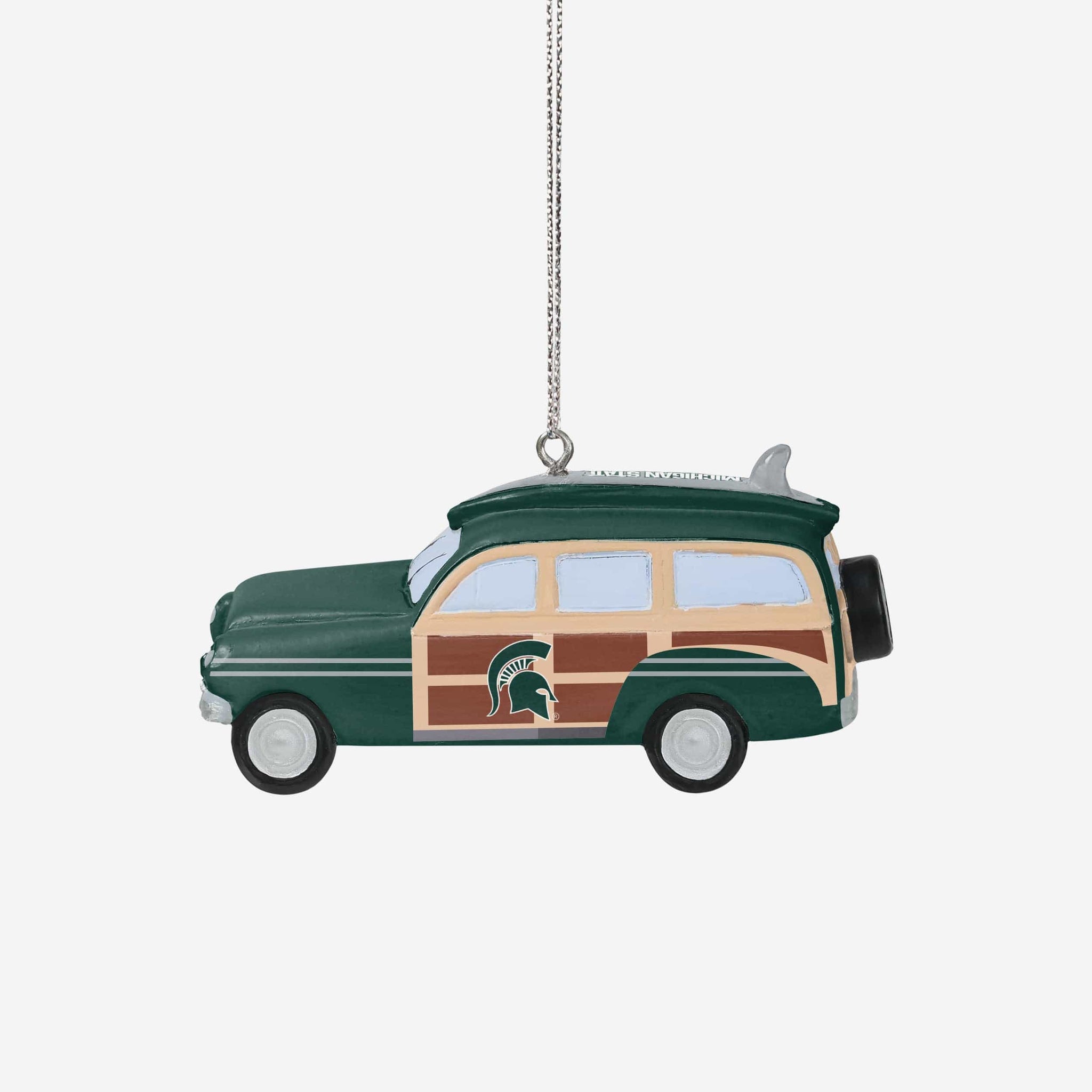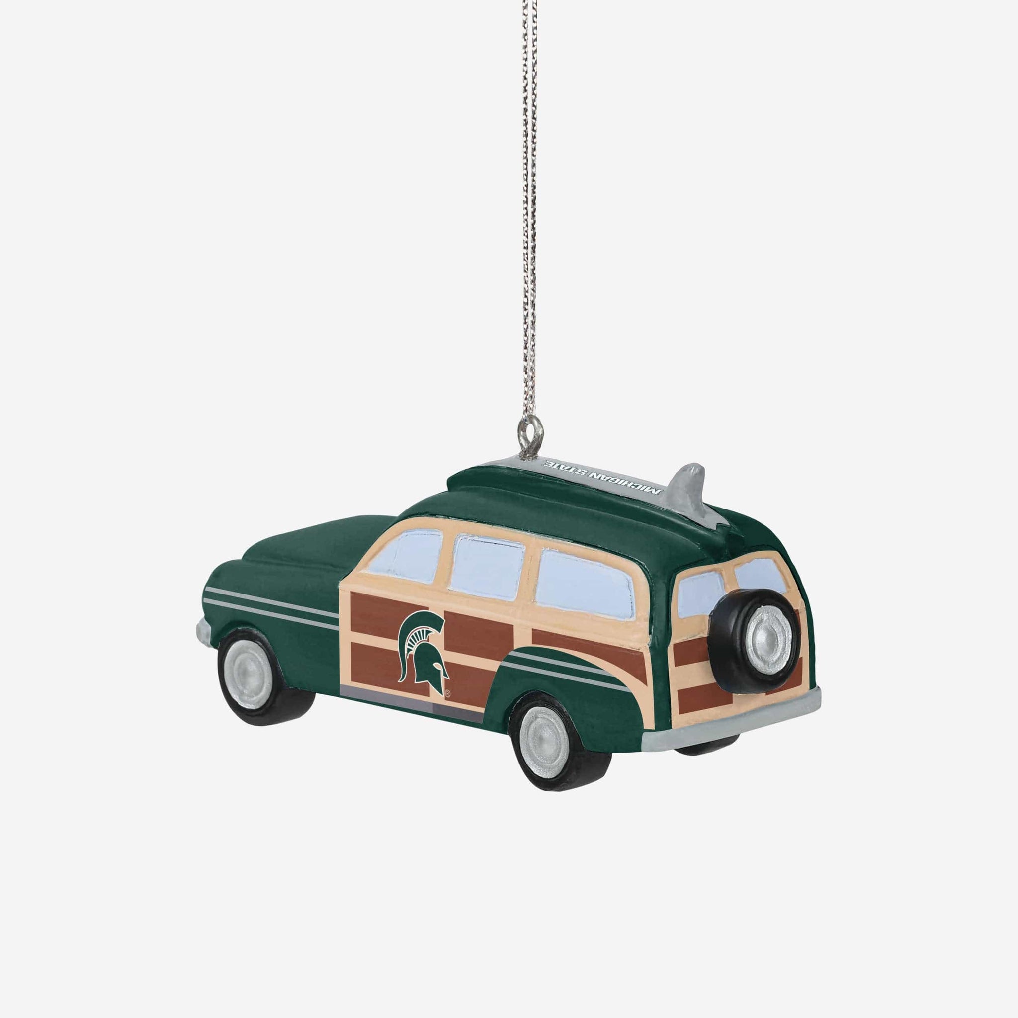 WARNING! Laying eyes on this Michigan State Spartans Station Wagon Ornament on your tree may result in an uncontrollable desire to embark on a road trip down the coast.