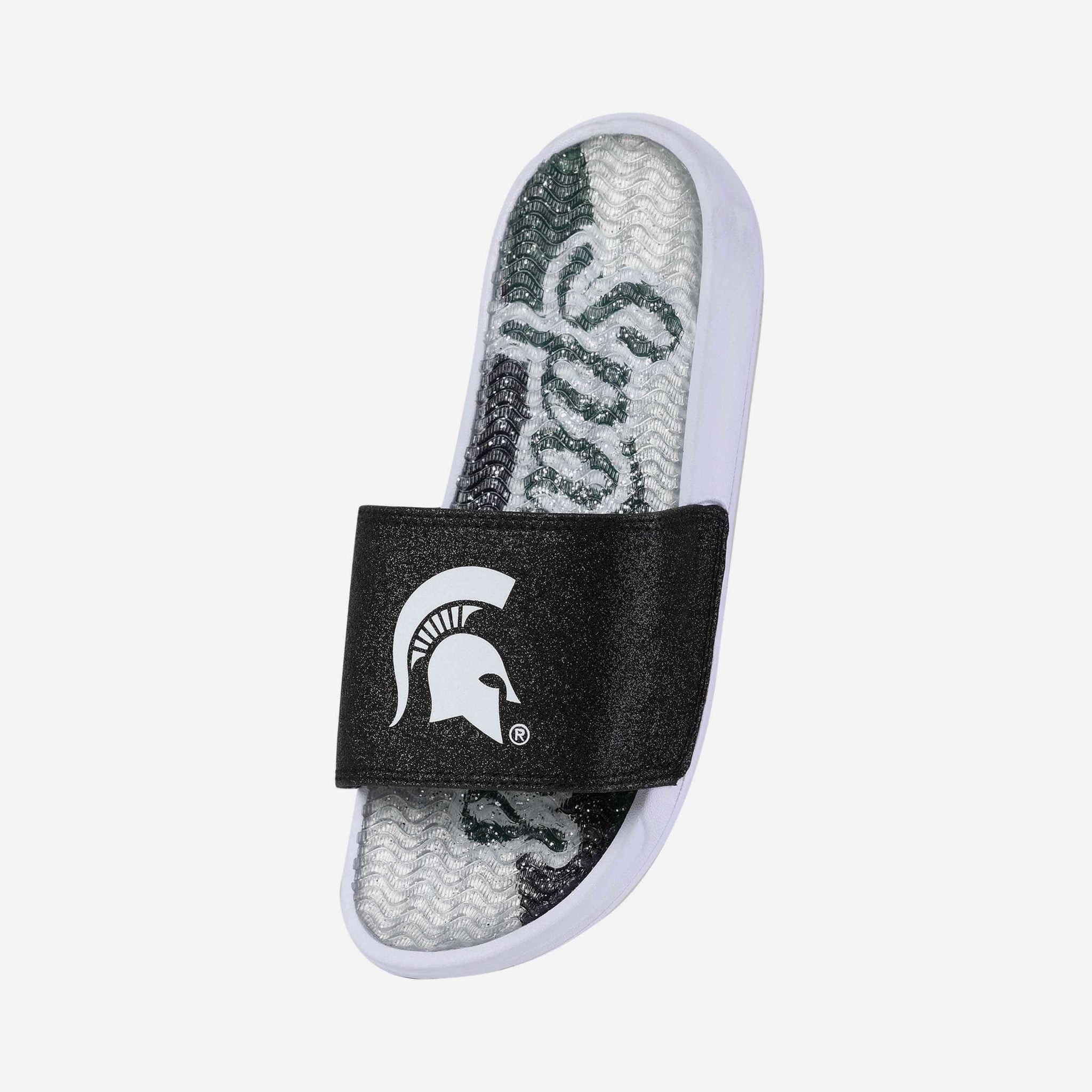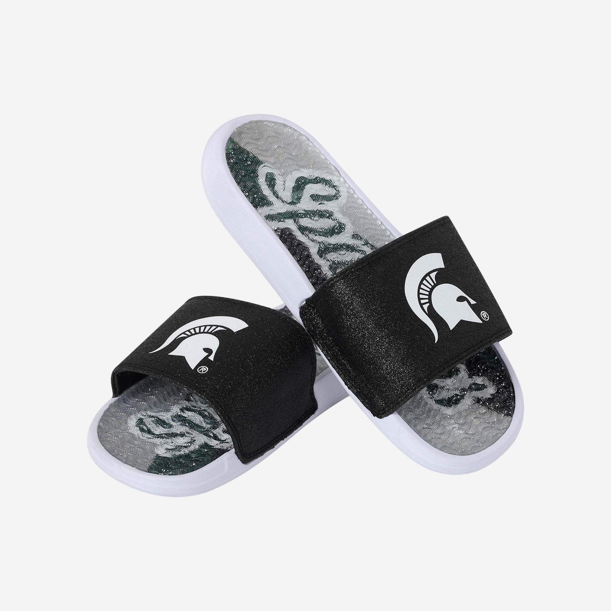 Fan footwear that will make you the pick of the glitter. Let your team spirit shine with every step in these Michigan State Spartans Women's Glitter Gel Slides!