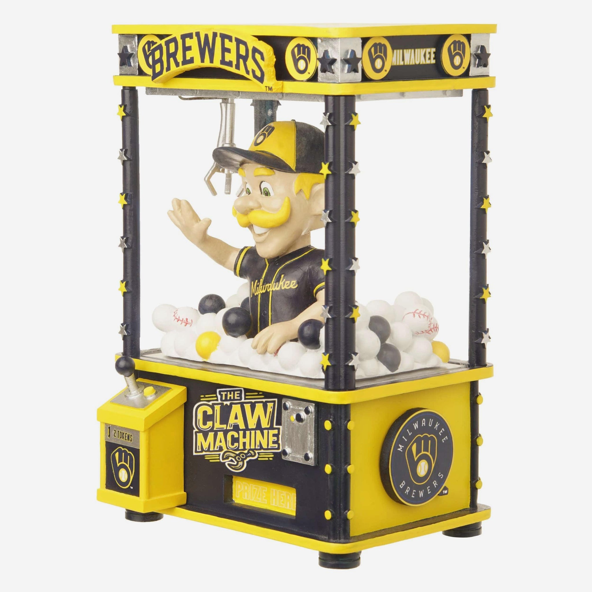 Step right up and win big! No need to swipe your game card, the Bernie Brewer Milwaukee Brewers Claw Machine Mascot Bobblehead is bringing the fun to your fancave.