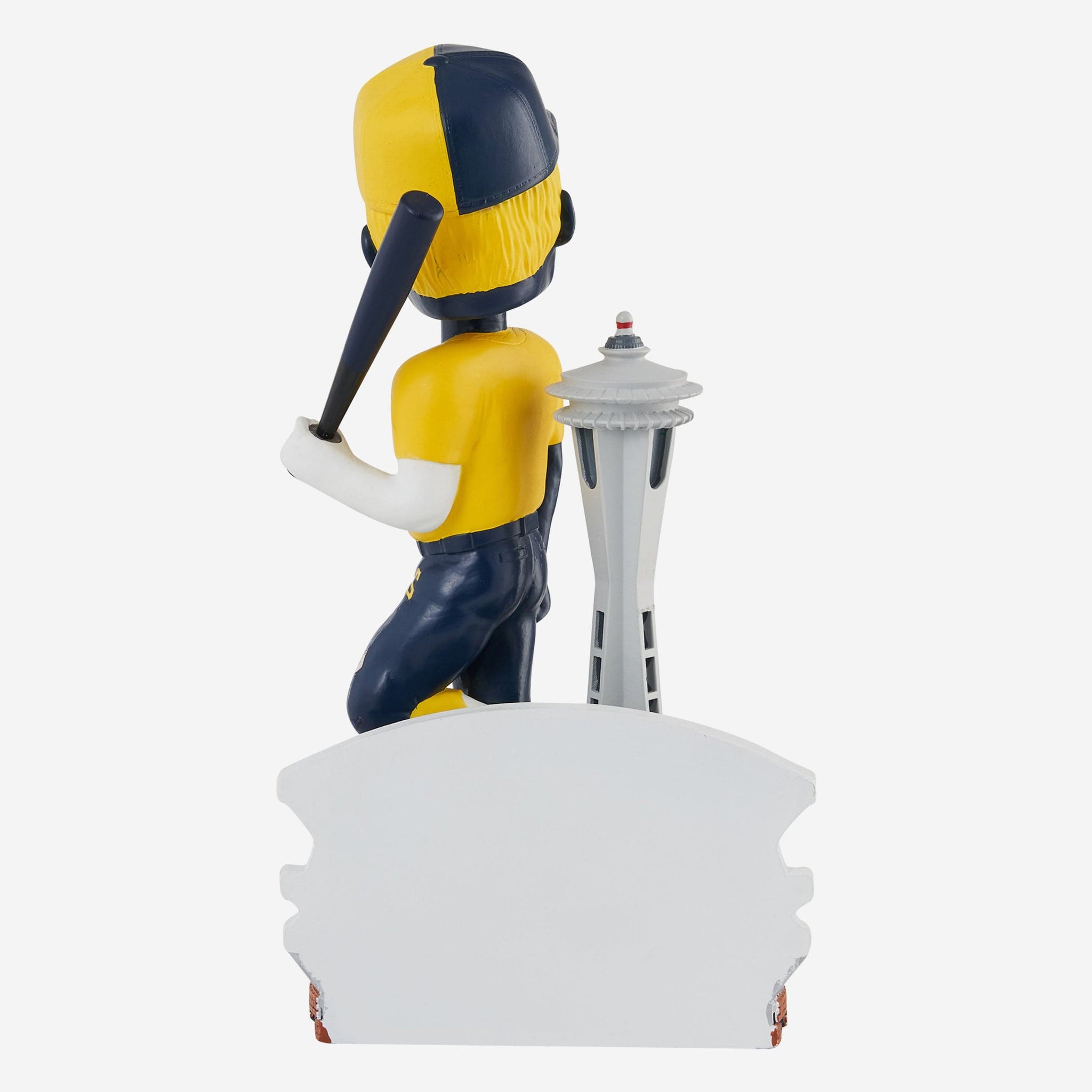 - Portrays figure wearing team-colored uniform, holding a baseball bat, and leaning against the Space Needle to bring the essence of The Emerald City to your fancave