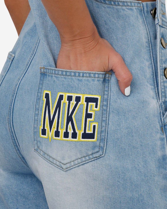 Show your team spirit in these stylish and comfortable Milwaukee Brewers Womens Big Logo Denim Shortalls. With their all-over denim design and bold team logo patch display, these shortalls are the perfect way to show your support for the Milwaukee Brewers!