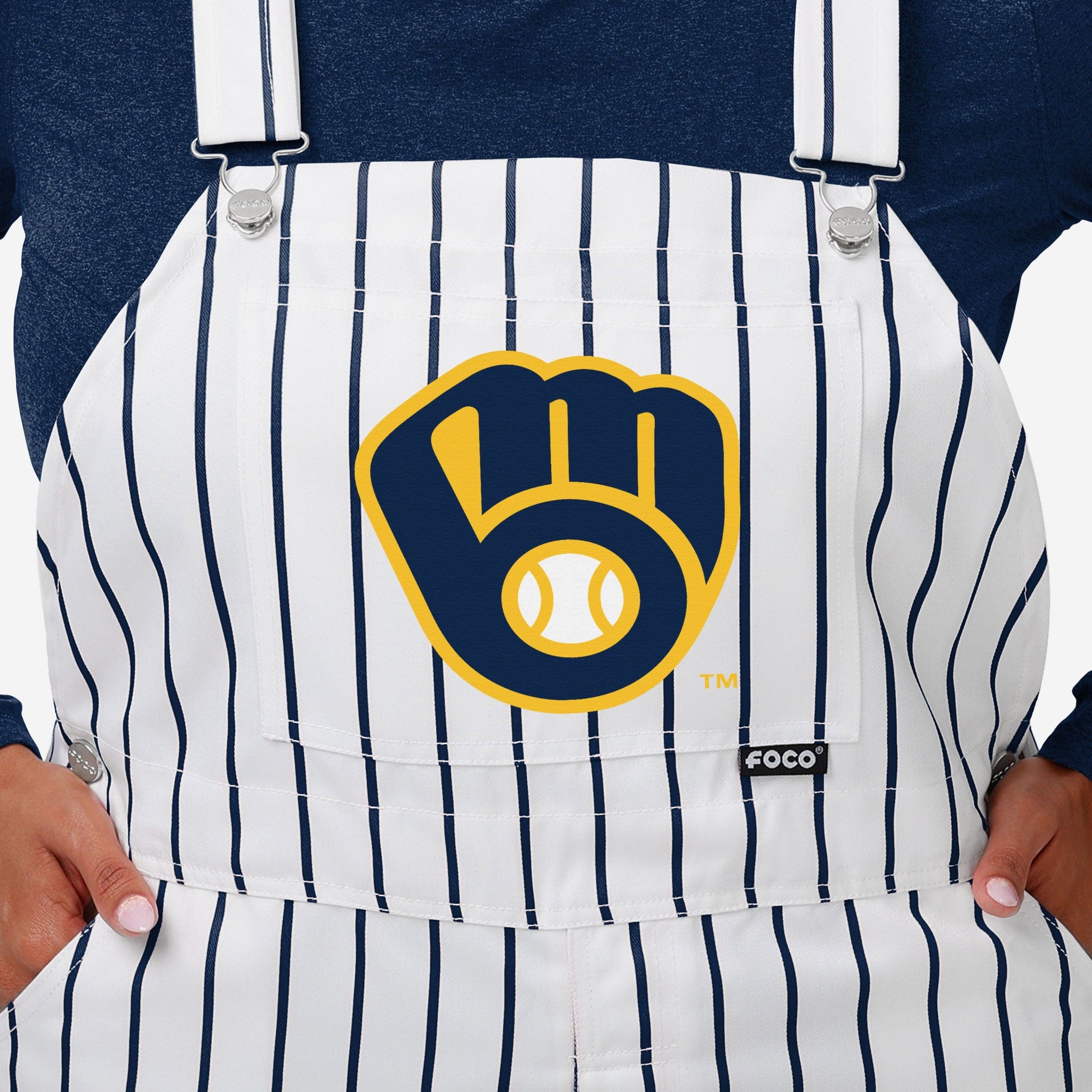 Show your team spirit in these stylish and comfortable Milwaukee Brewers Women's Pinstripe Bib Overalls. With their all-over team-colored design and bold team logo display, these overalls are the perfect way to show your support for the Milwaukee Brewers while showing off some pinstriped style that will go great with your team jersey and the rest of your team gear.