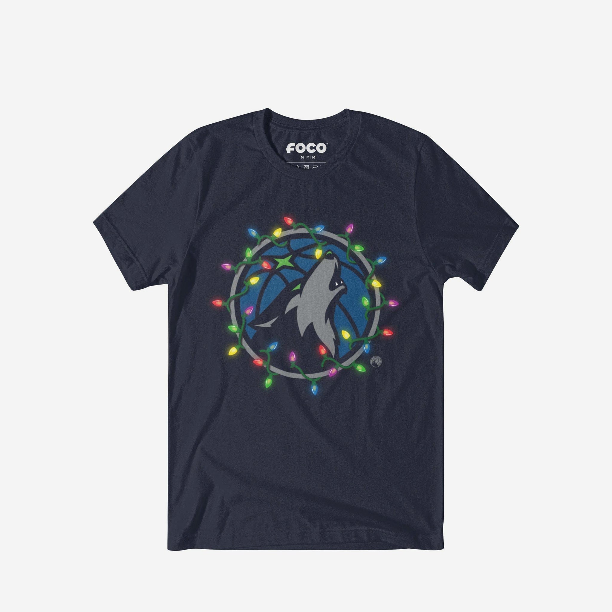 Merry, bright, and full of team spirit! Let your fandom light the way to a legendary holiday season with this Minnesota Timberwolves Primary Logo Holiday Lights T-Shirt.