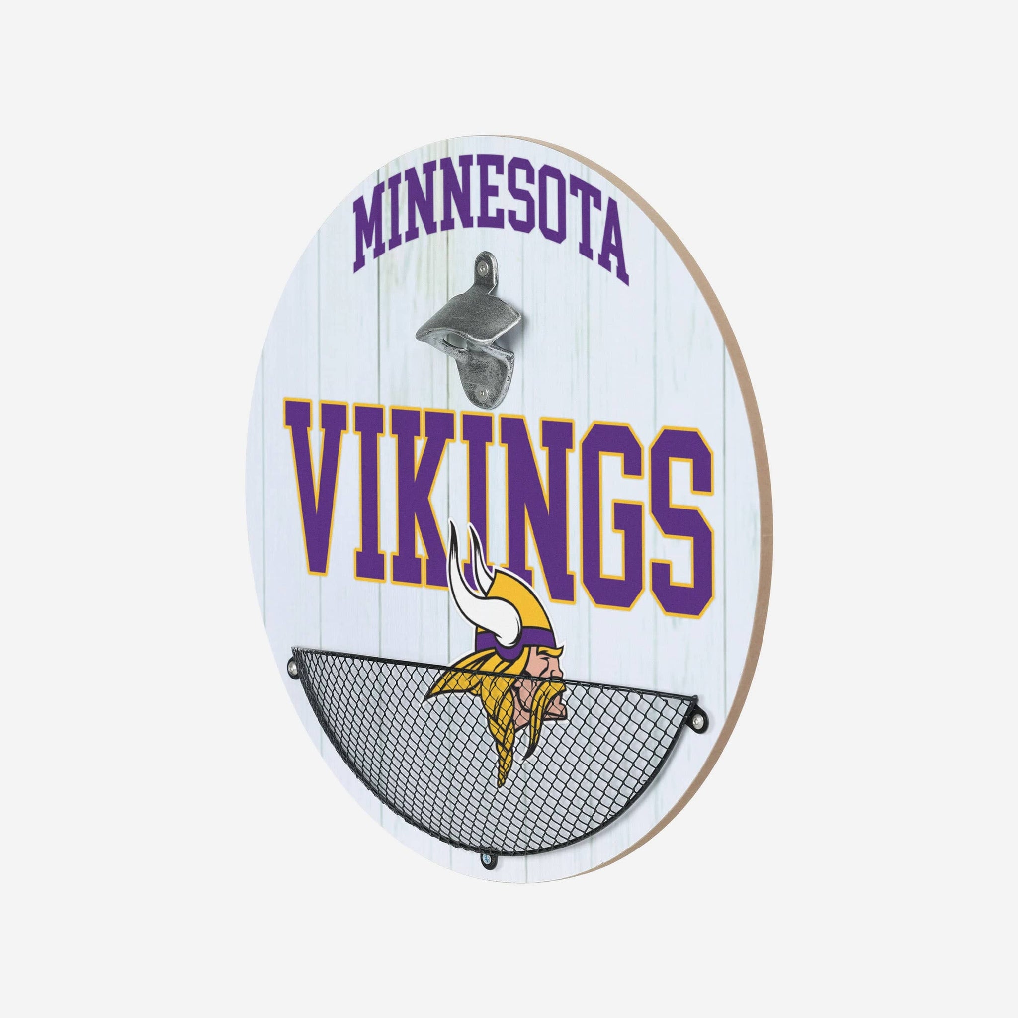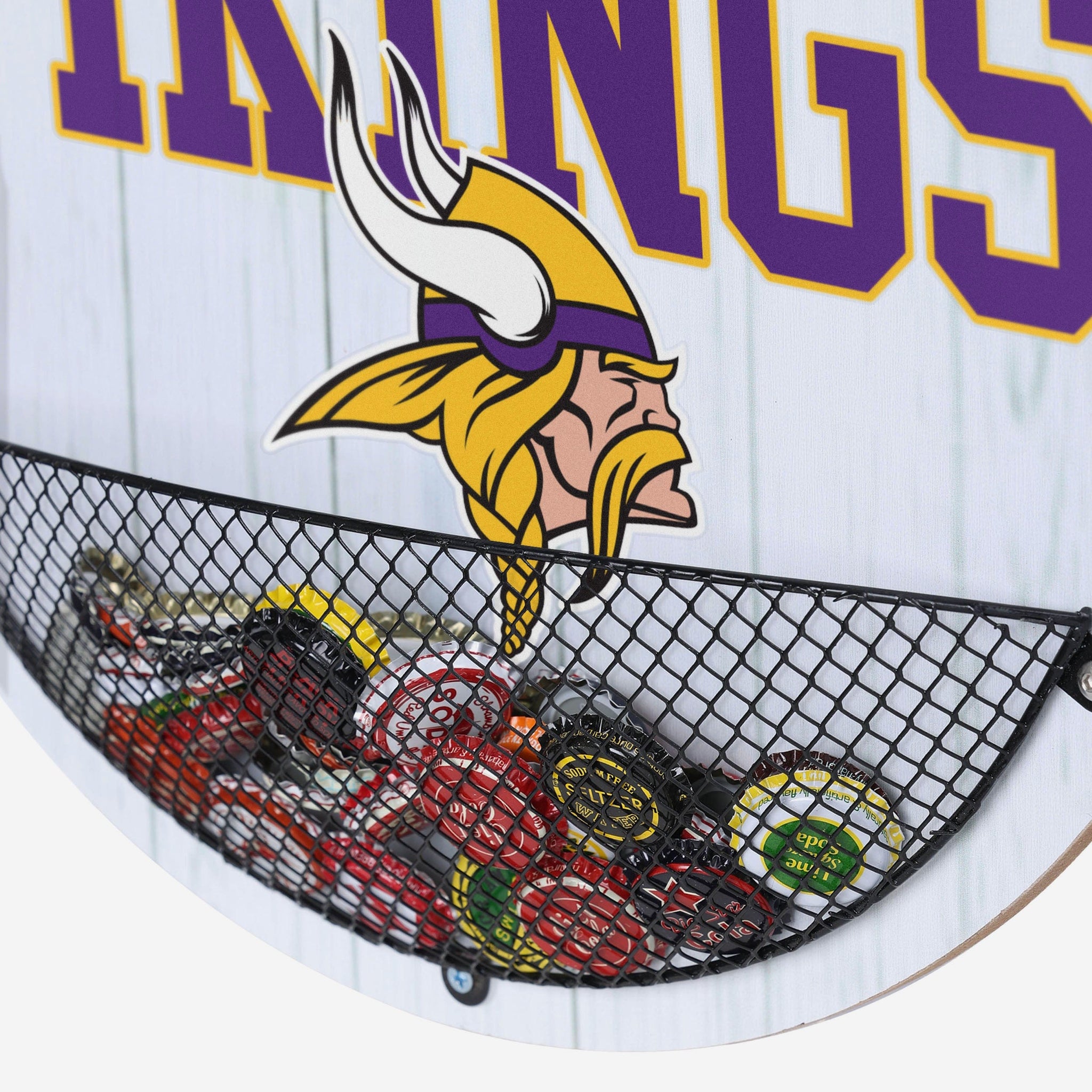 Pop the top and let the cap drop. Cleanup after gameday in the fancave is easy when you've got this Minnesota Vikings Bottle Opener Cap Catcher Wall Sign.