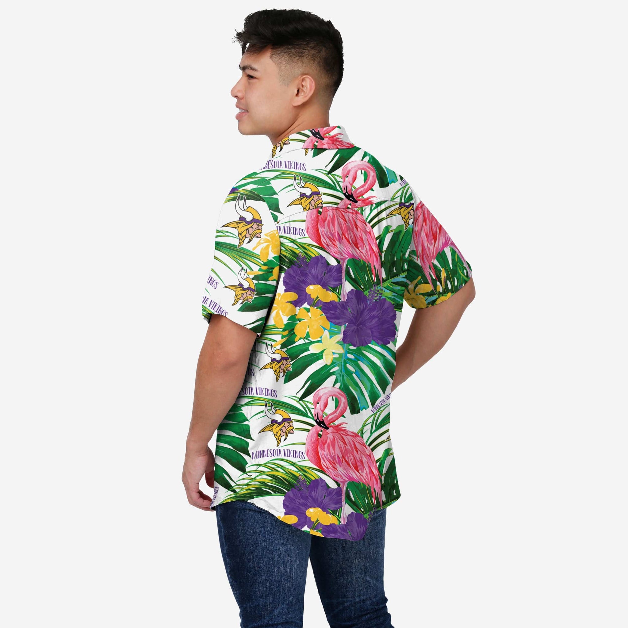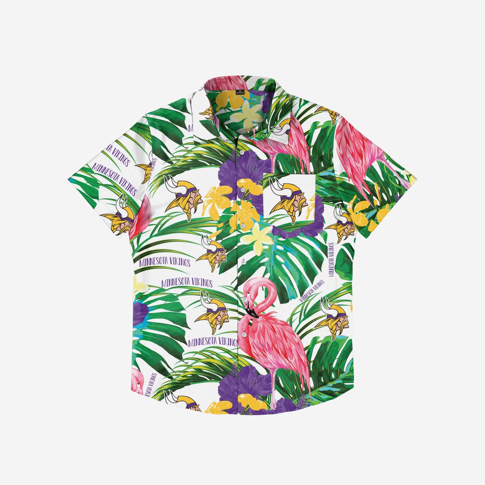 Aloha, party people! No need to set your watch - You're always on island time when you're rocking this Minnesota Vikings Flamingo Button Up Shirt.