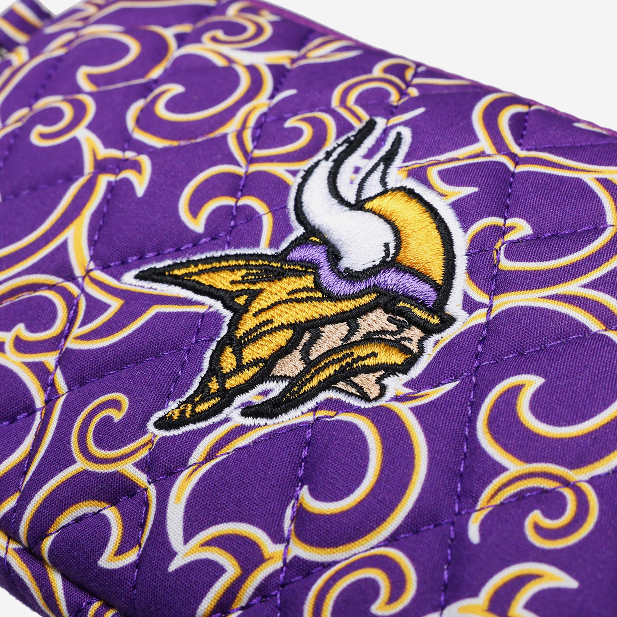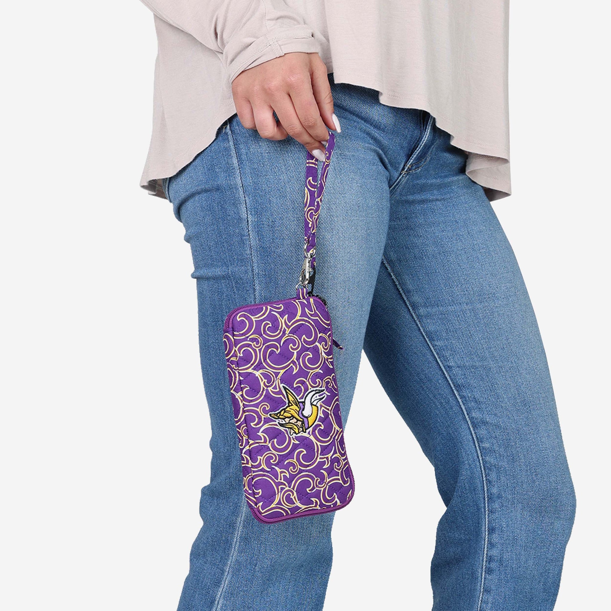 Get ready to fashionably flaunt your fandom! Keep your essentials close and your team pride on display with the Minnesota Vikings Quilted Printed Wristlet.
