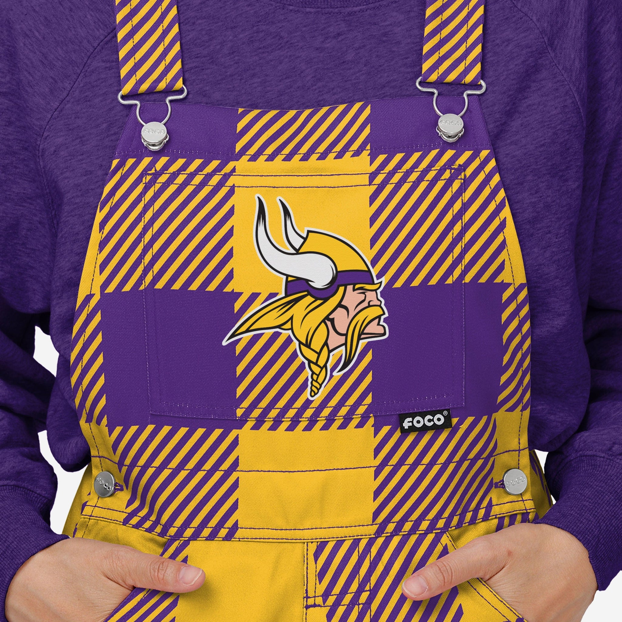 Minnesota Vikings Womens Plaid Bib Overalls FOCO XS - FOCO.com