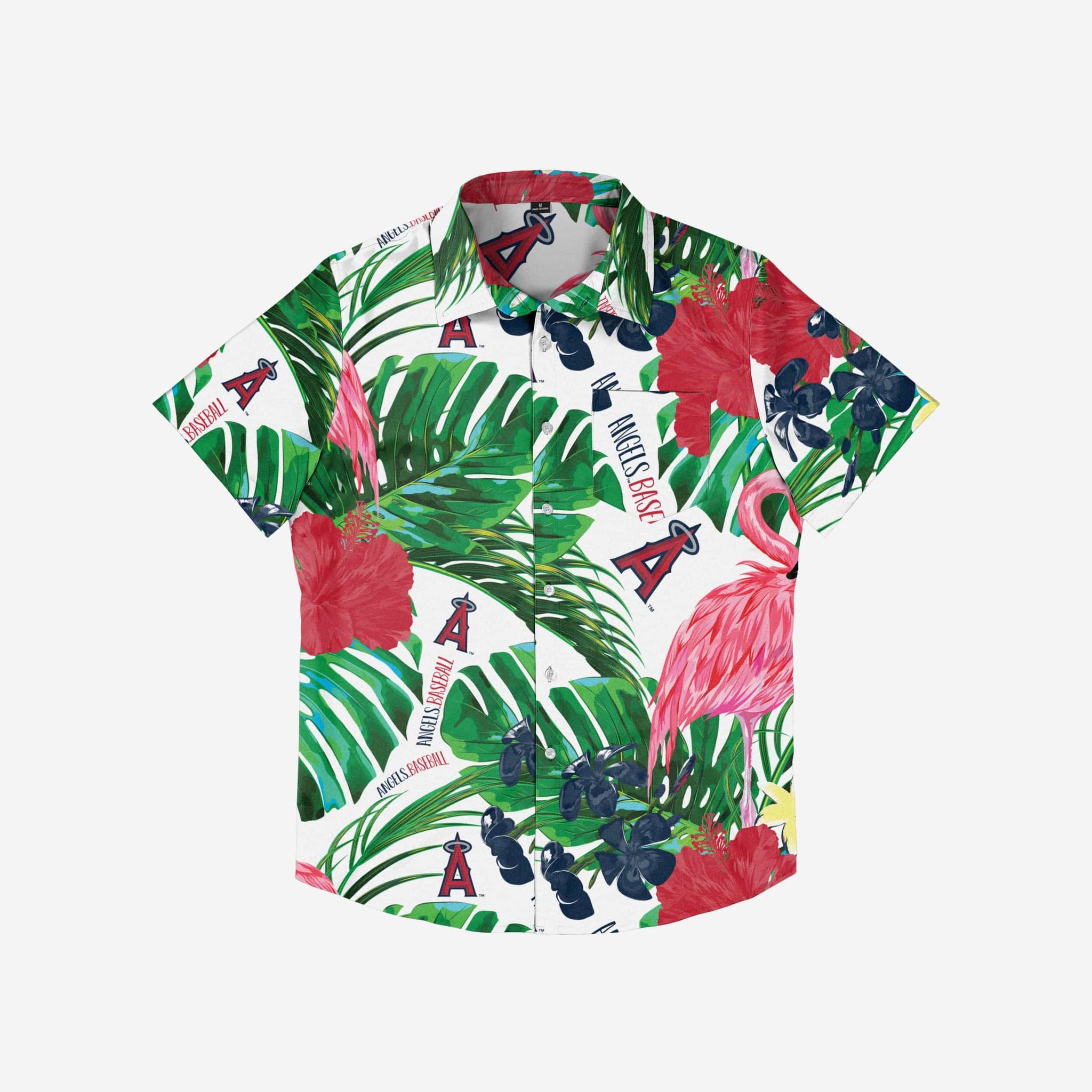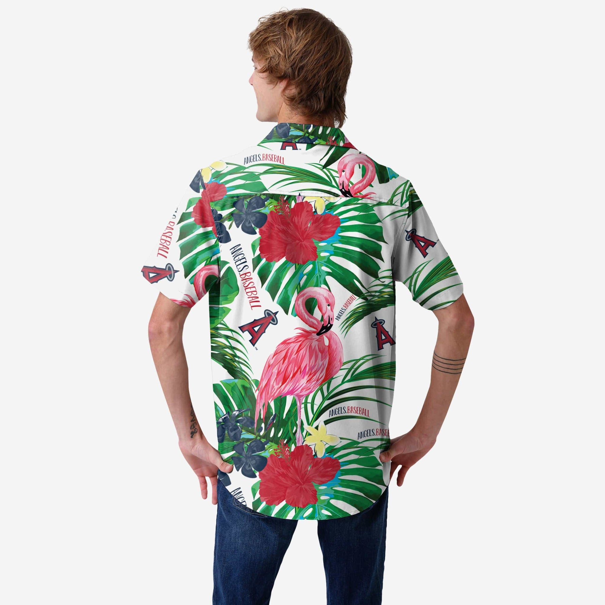 Aloha, party people! No need to set your watch - You're always on island time when you're rocking this Los Angeles Angels Flamingo Button Up Shirt.