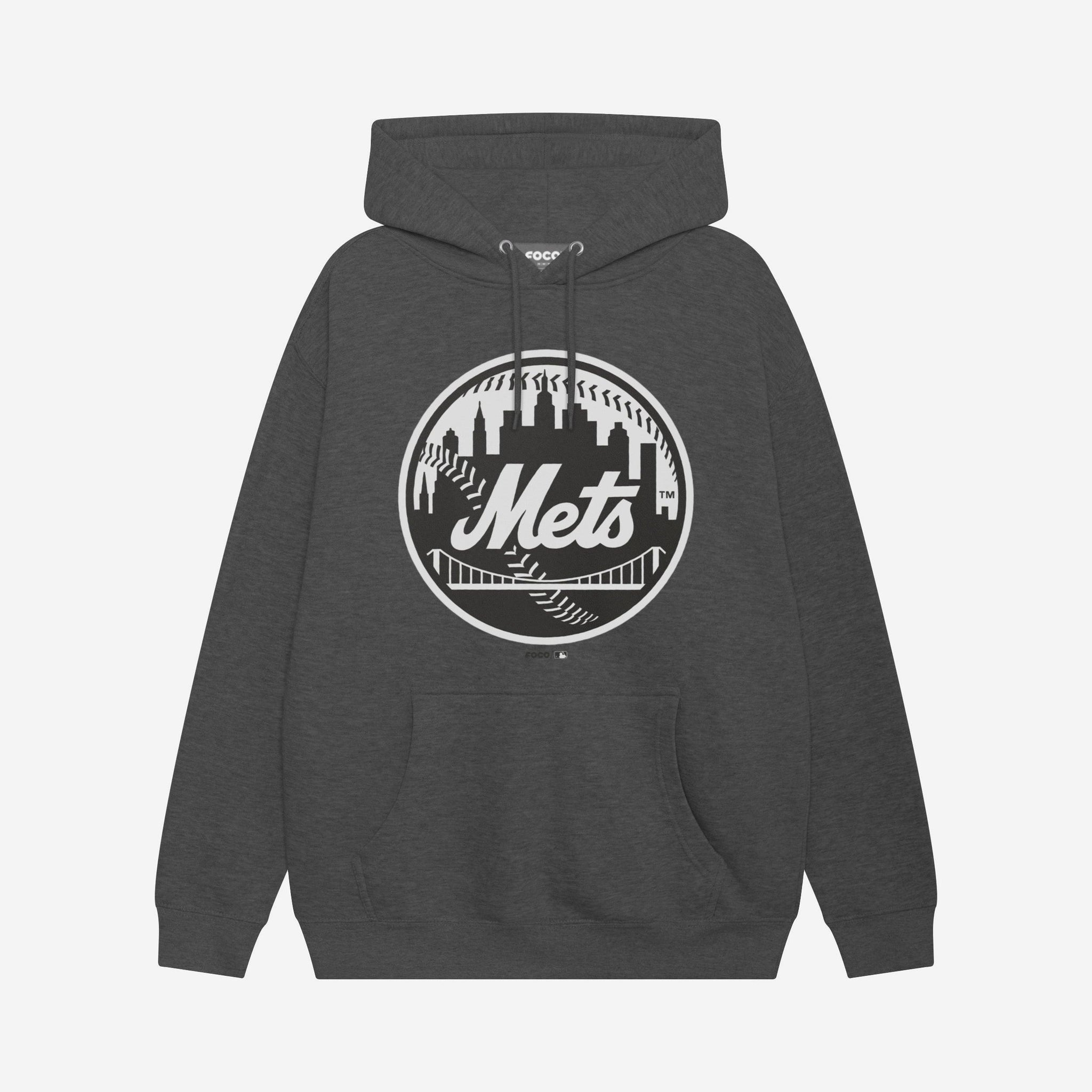 New York Mets Black & White Primary Logo Hoodie FOCO S - FOCO.com