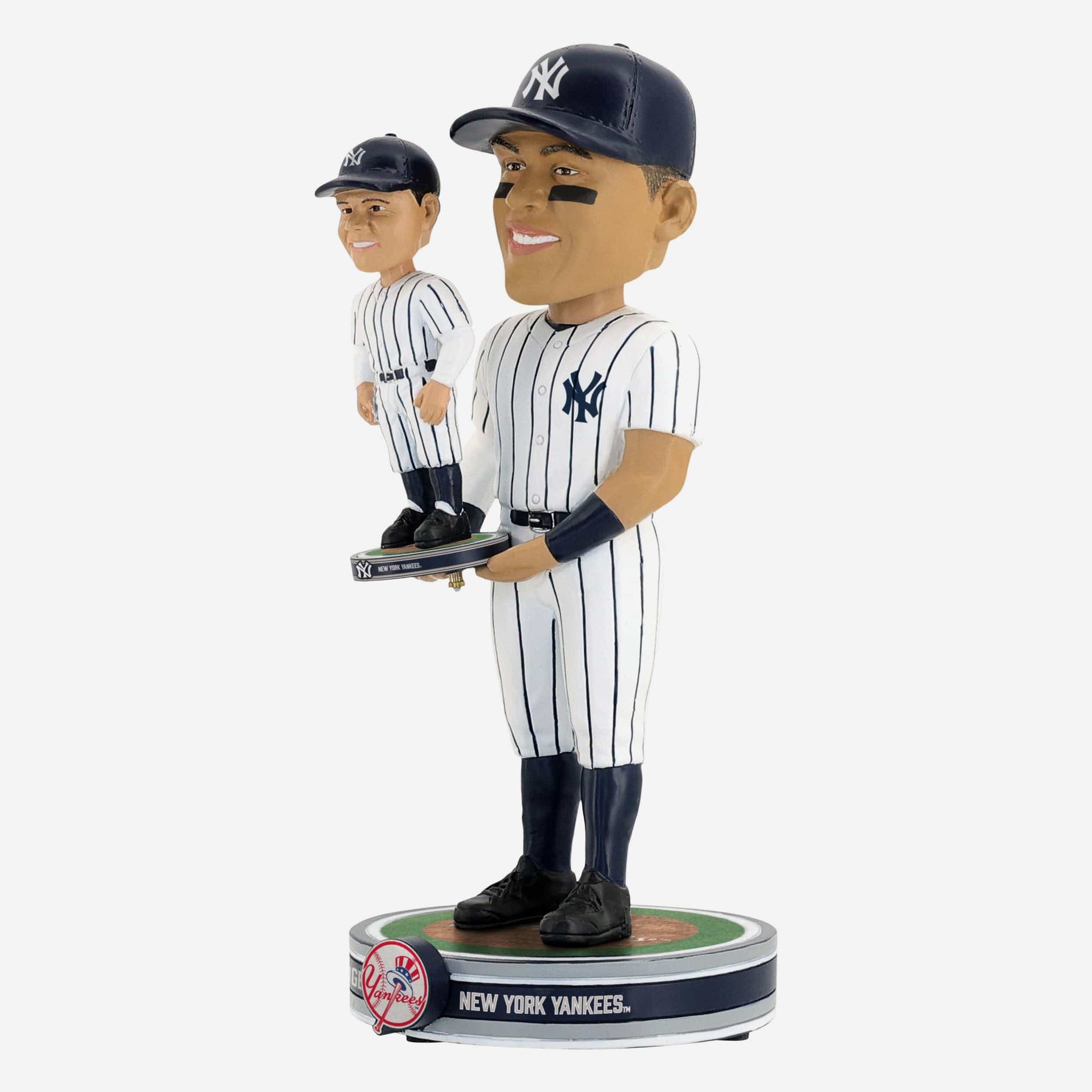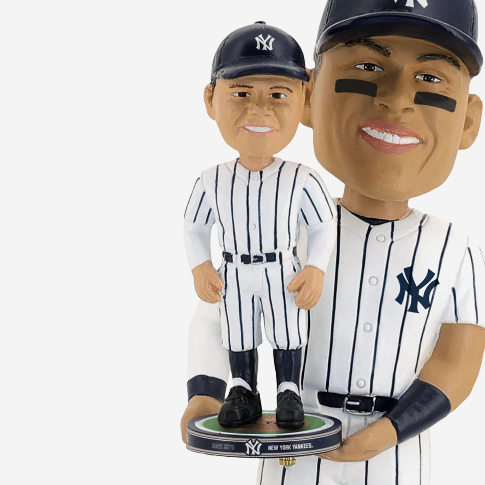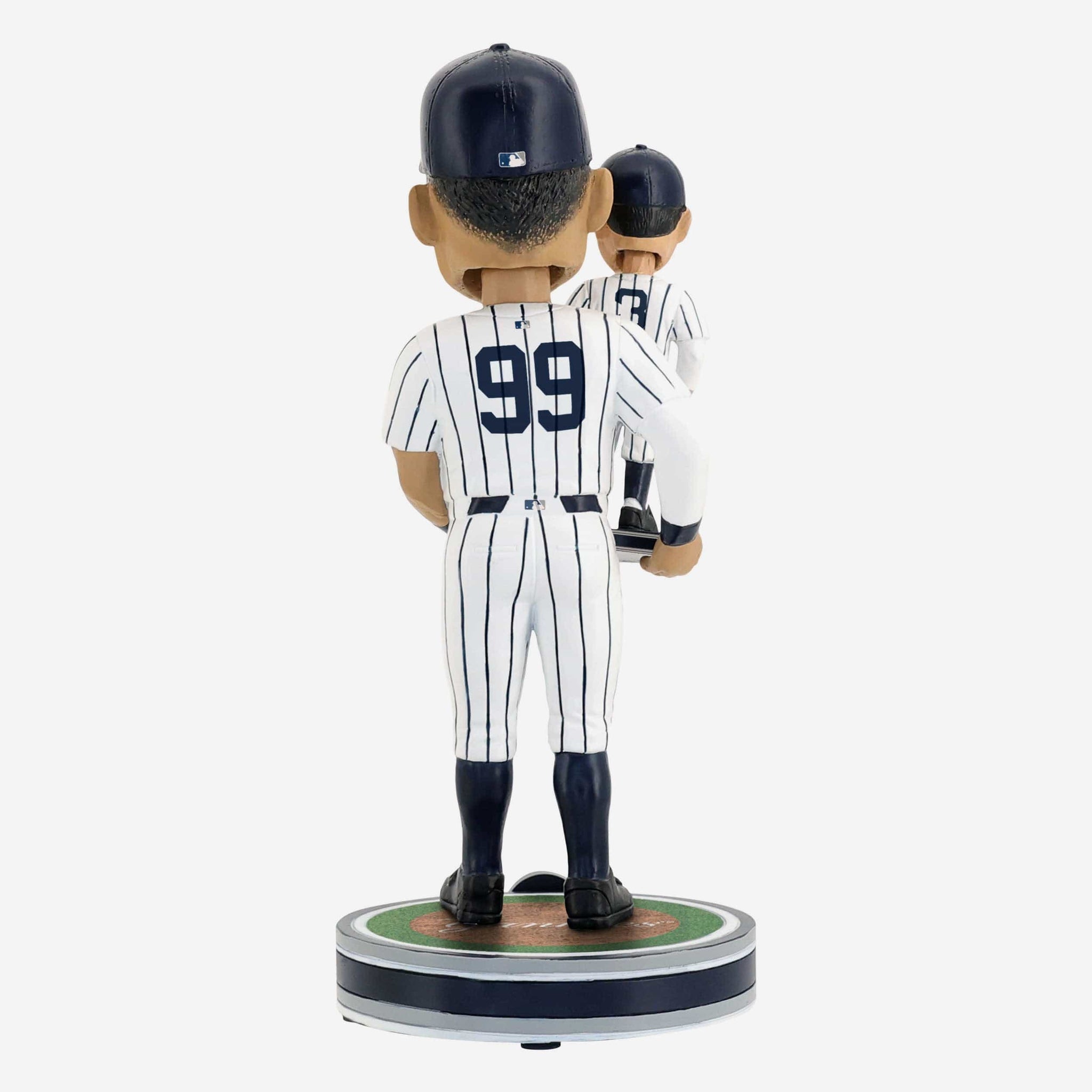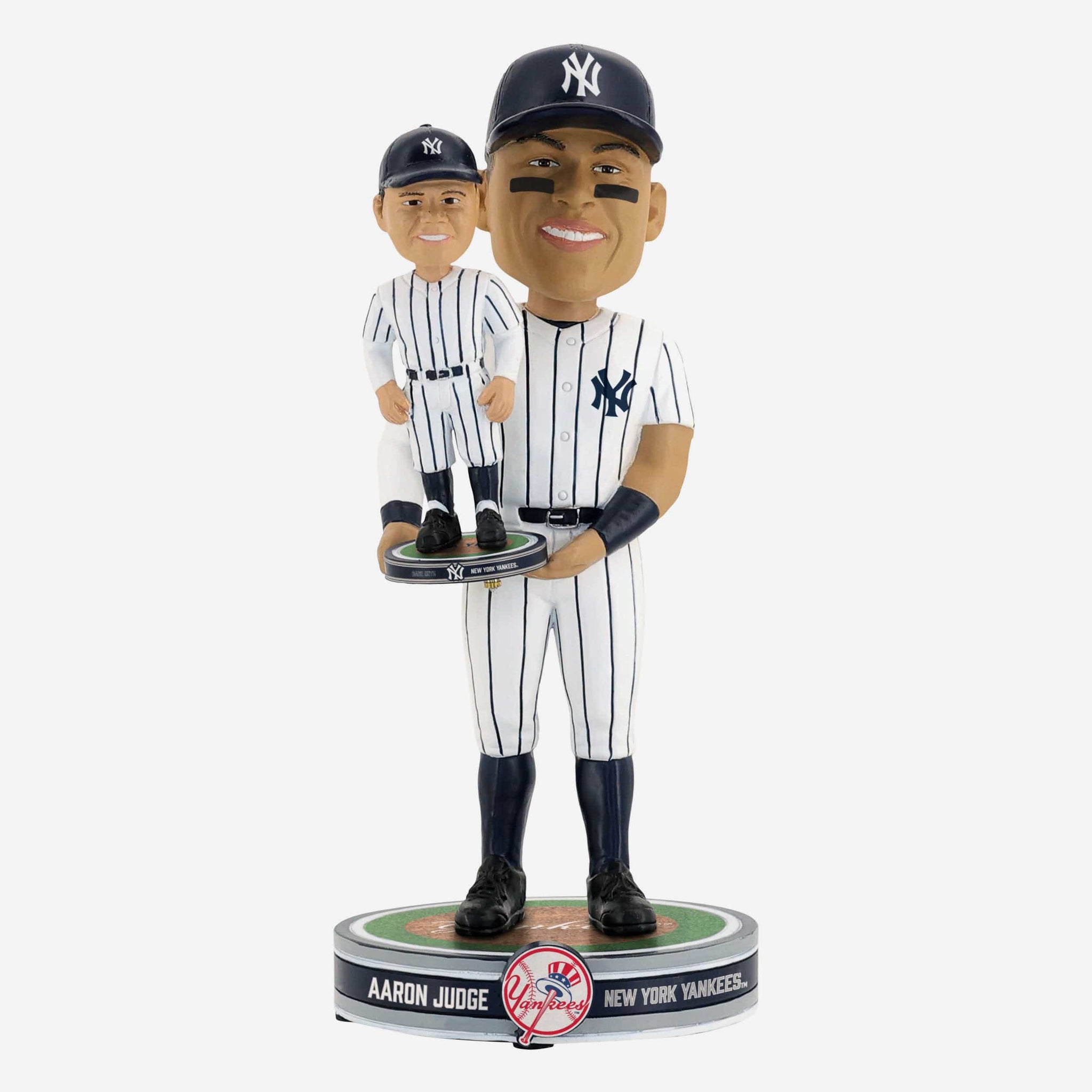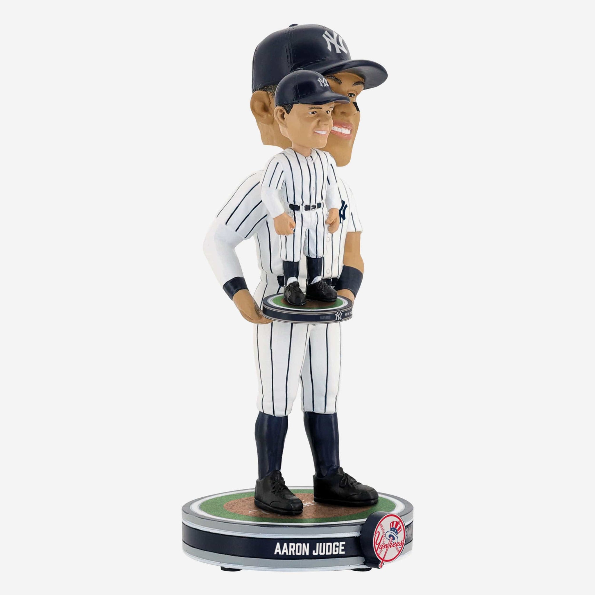 - Portrays Aaron Judge wearing his white gameday uniform, holding a miniature bobblehead of Babe Ruth, because a bobble holding a bobble friendz is even cooler than a regular bobble