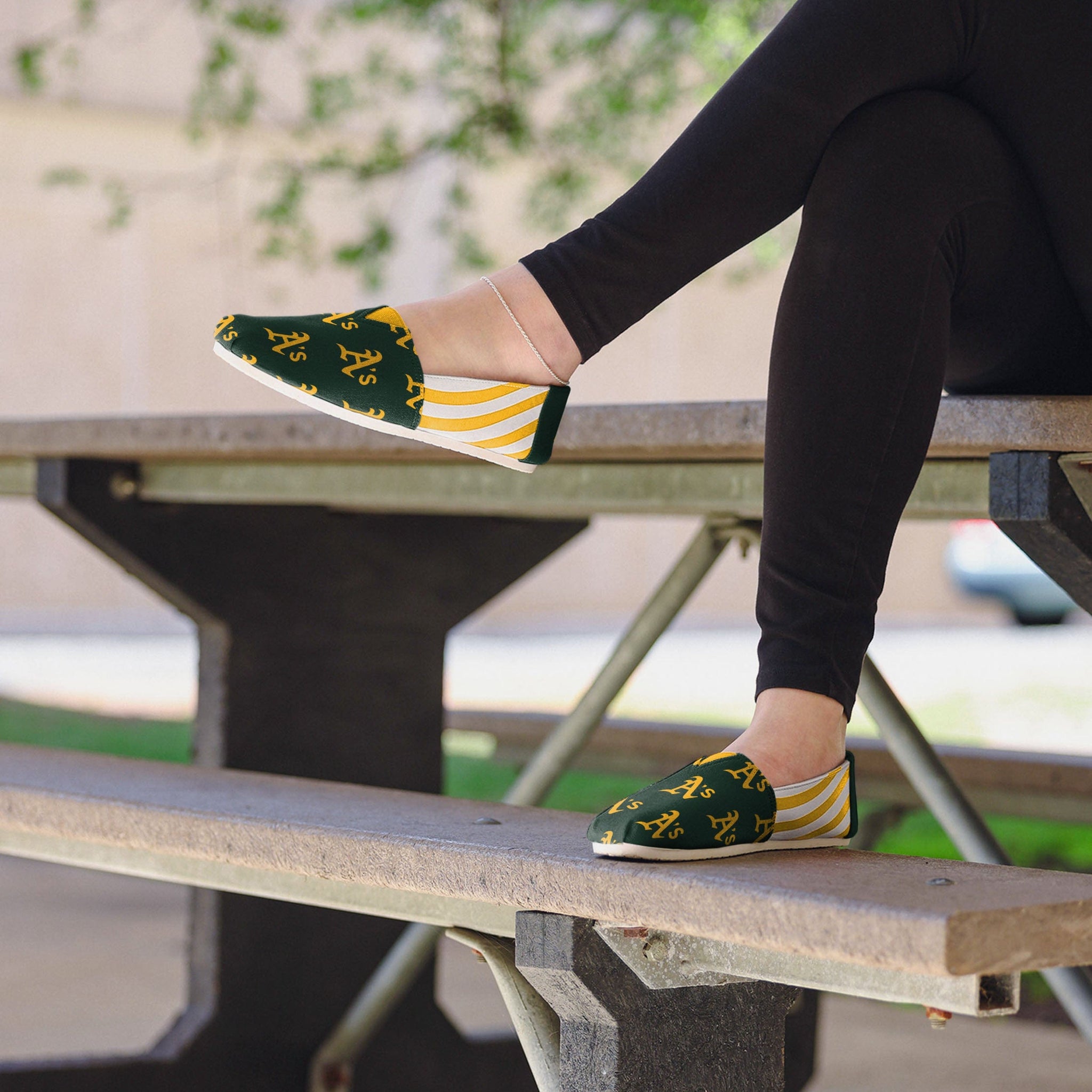 Would you rather a) be comfortable, b) be stylish or c) rock your team spirit in these Oakland Athletics Womens Stripe Canvas Shoes? Wrong! Wait, did you say all three? Because the answer is all three.