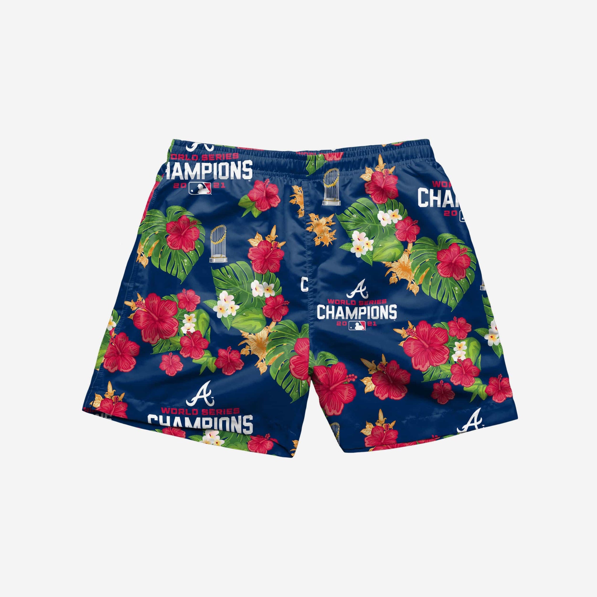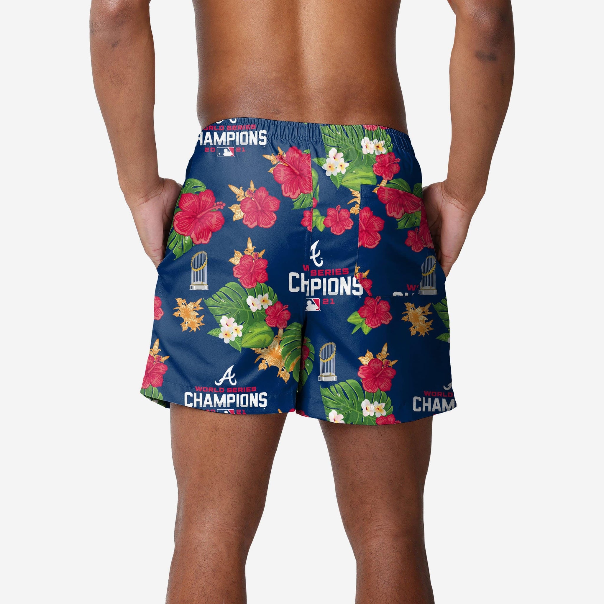 Beat the heat and stay oh, so cool in championship style! Dive into the deep end of celebratory spirit with these Atlanta Braves 2021 World Series Champions Floral Swimming Trunks!