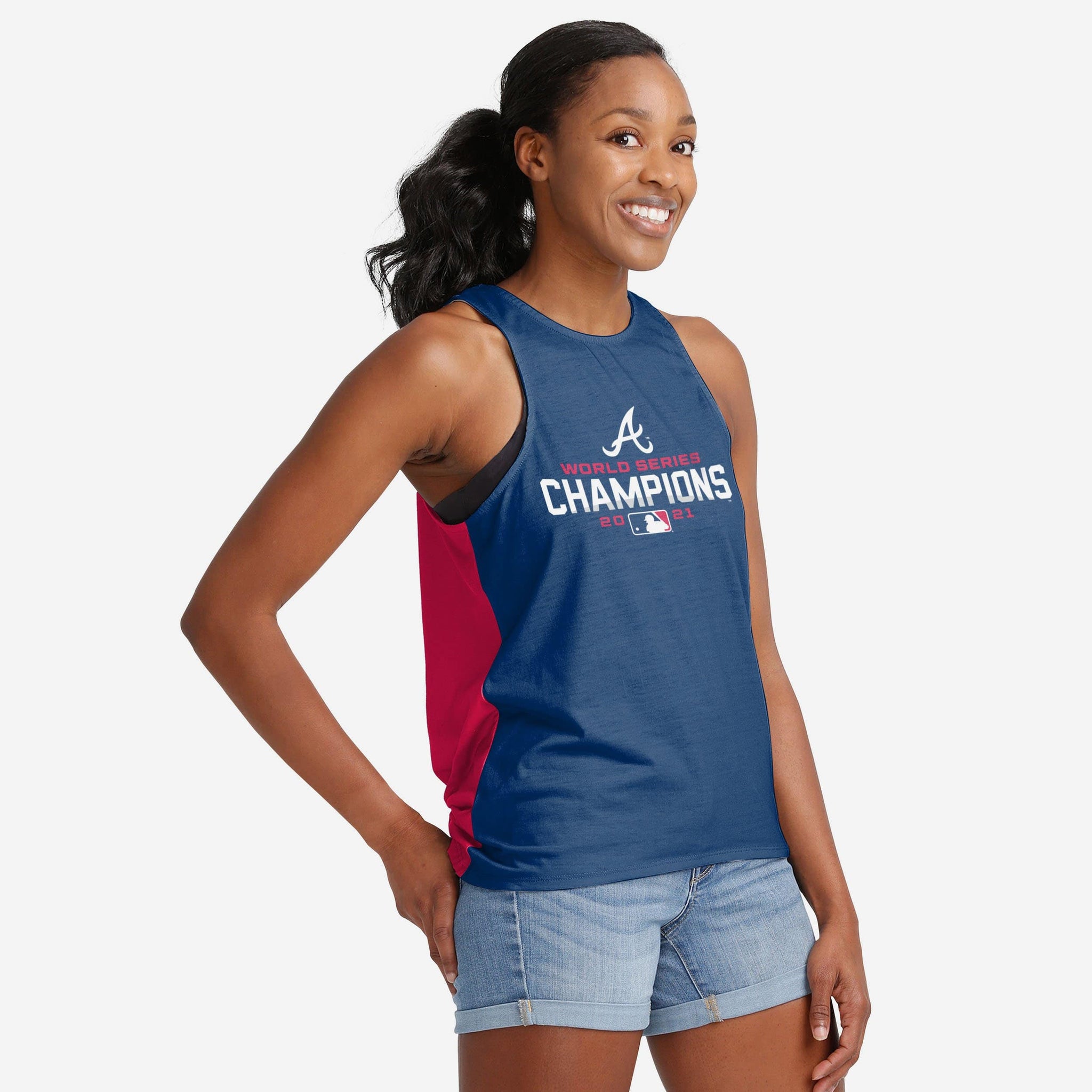 What time is it? Tie-me to celebrate! And you've GOTTA make sure you're celebrating in style. This Atlanta Braves 2021 World Series Champions Women's Tie-Breaker Sleeveless Top has you covered!