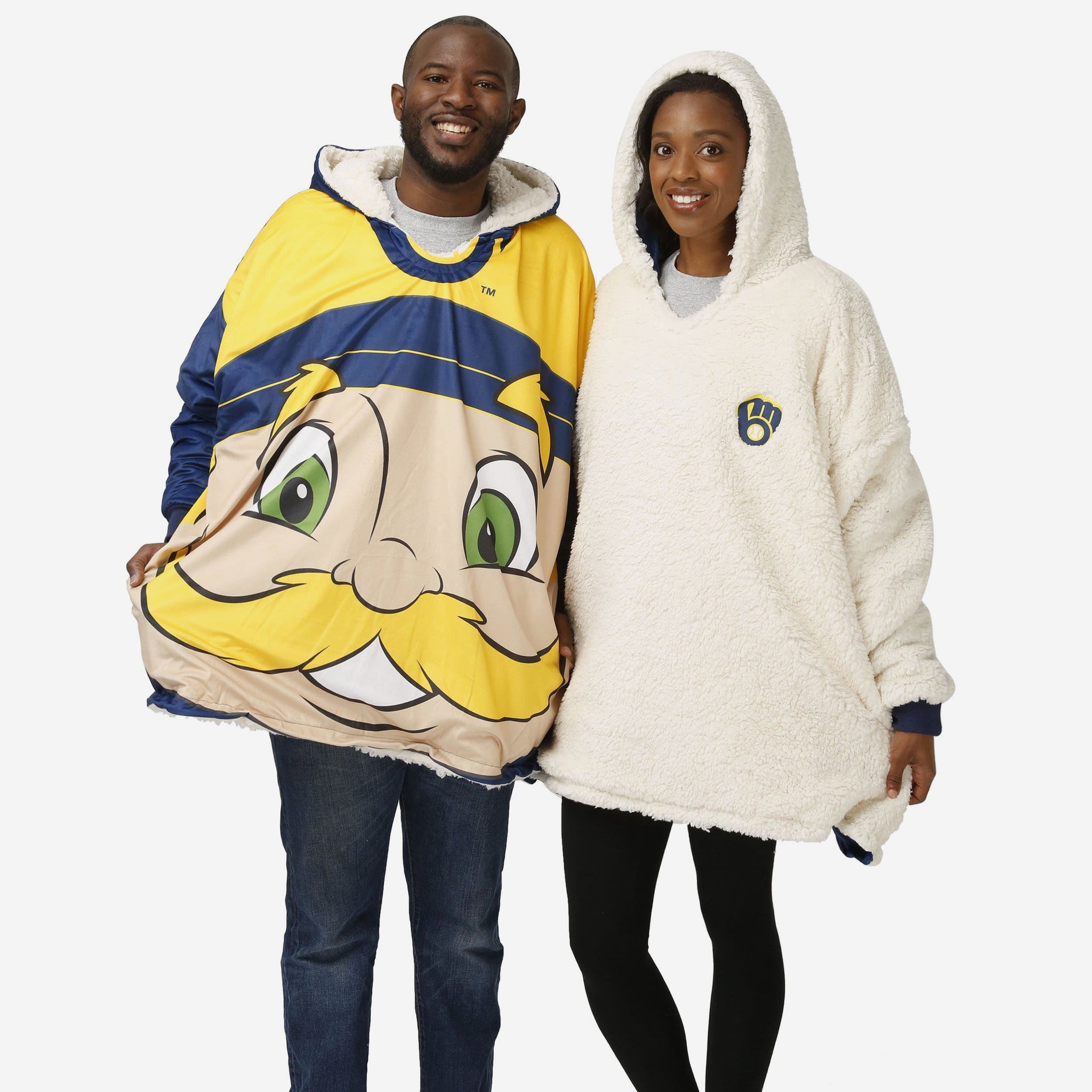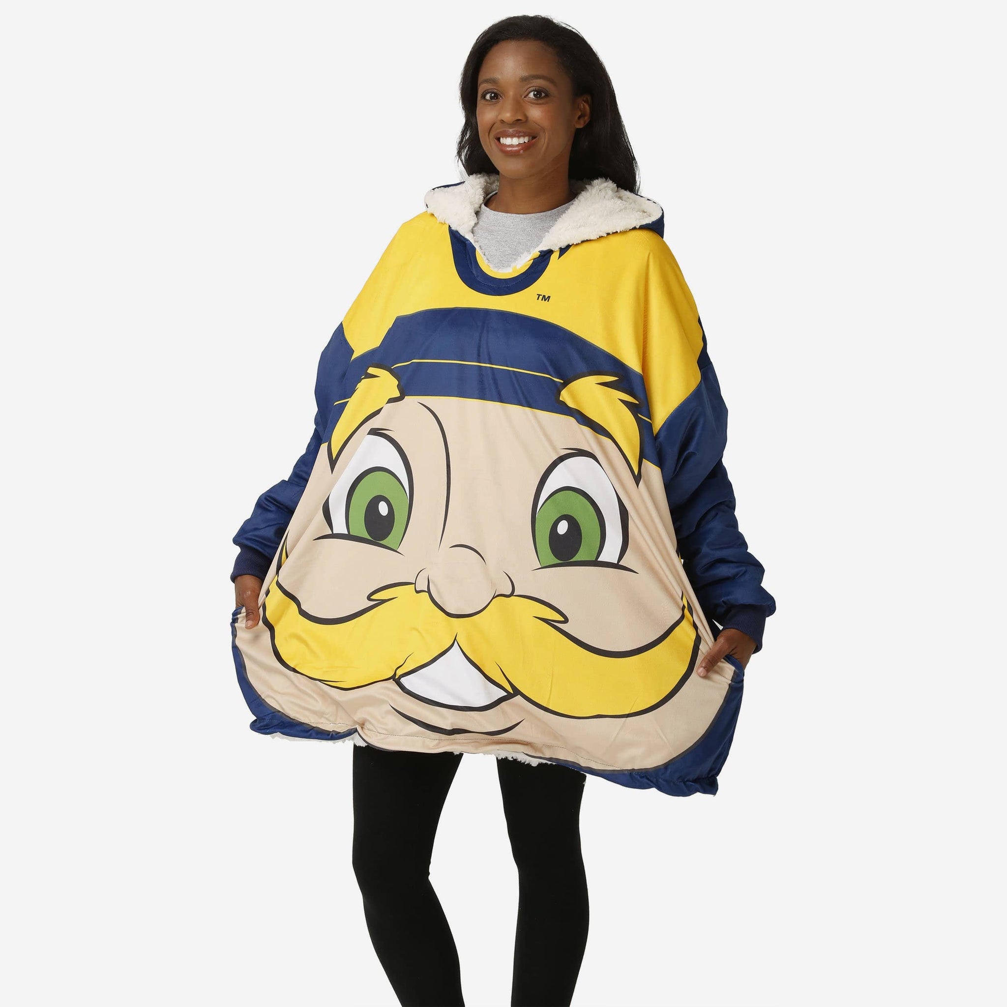 Dancing during game breaks. Playing pranks on spectators. Throwing t-shirts into the crowd. The mascot EMBODIES the fun of gameday. And now, you can enjoy that fun from the comfort of your own couch by lounging in this Bernie Brewer Milwaukee Brewers Reversible Mascot Hoodeez. No hot dog cannon necessary.