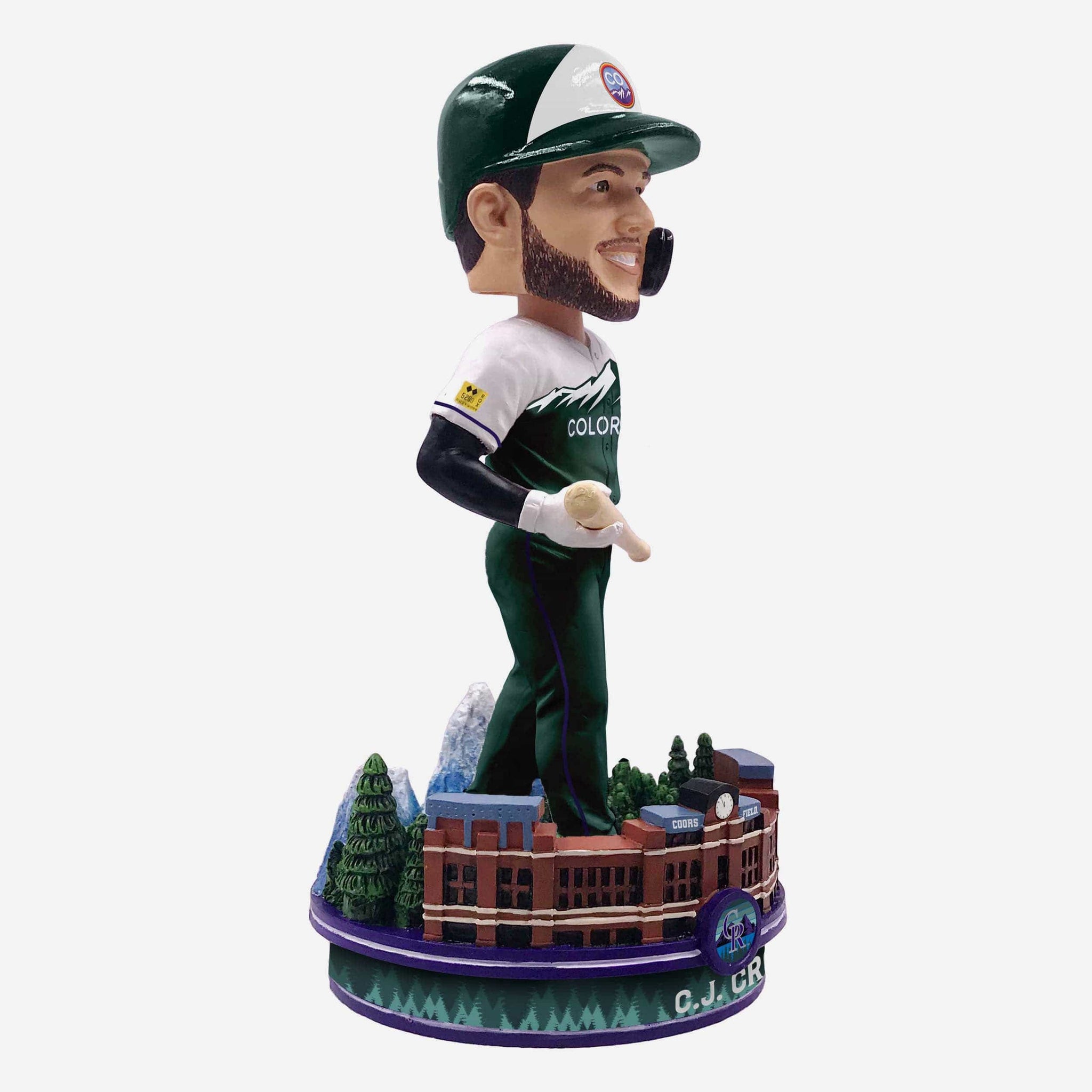 C.J. Cron is operating on mountain time. Show off your one-of-a-kind team pride by making this C.J. Cron Colorado Rockies 2022 City Connect Bobblehead the best-dressed mountain man of your collection.