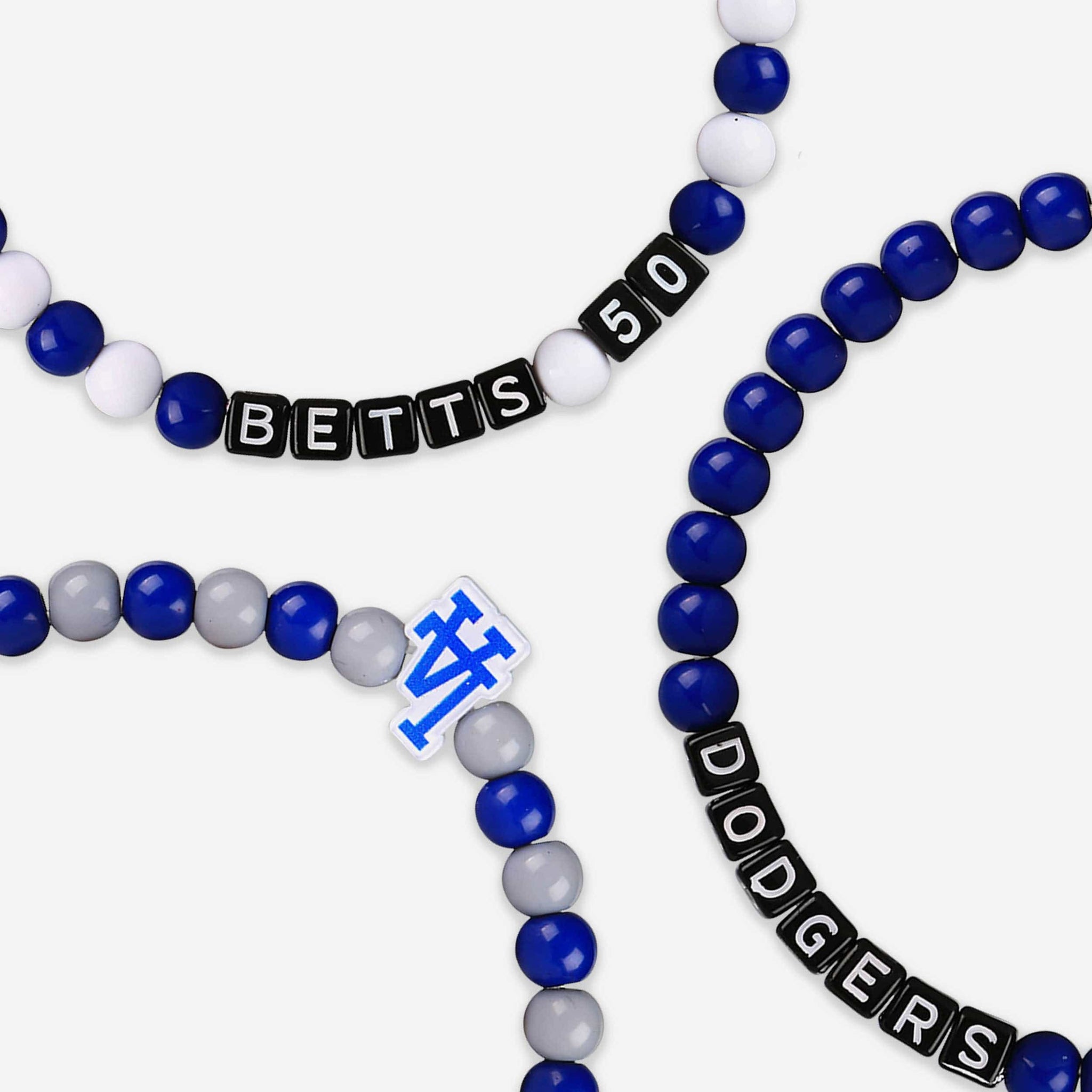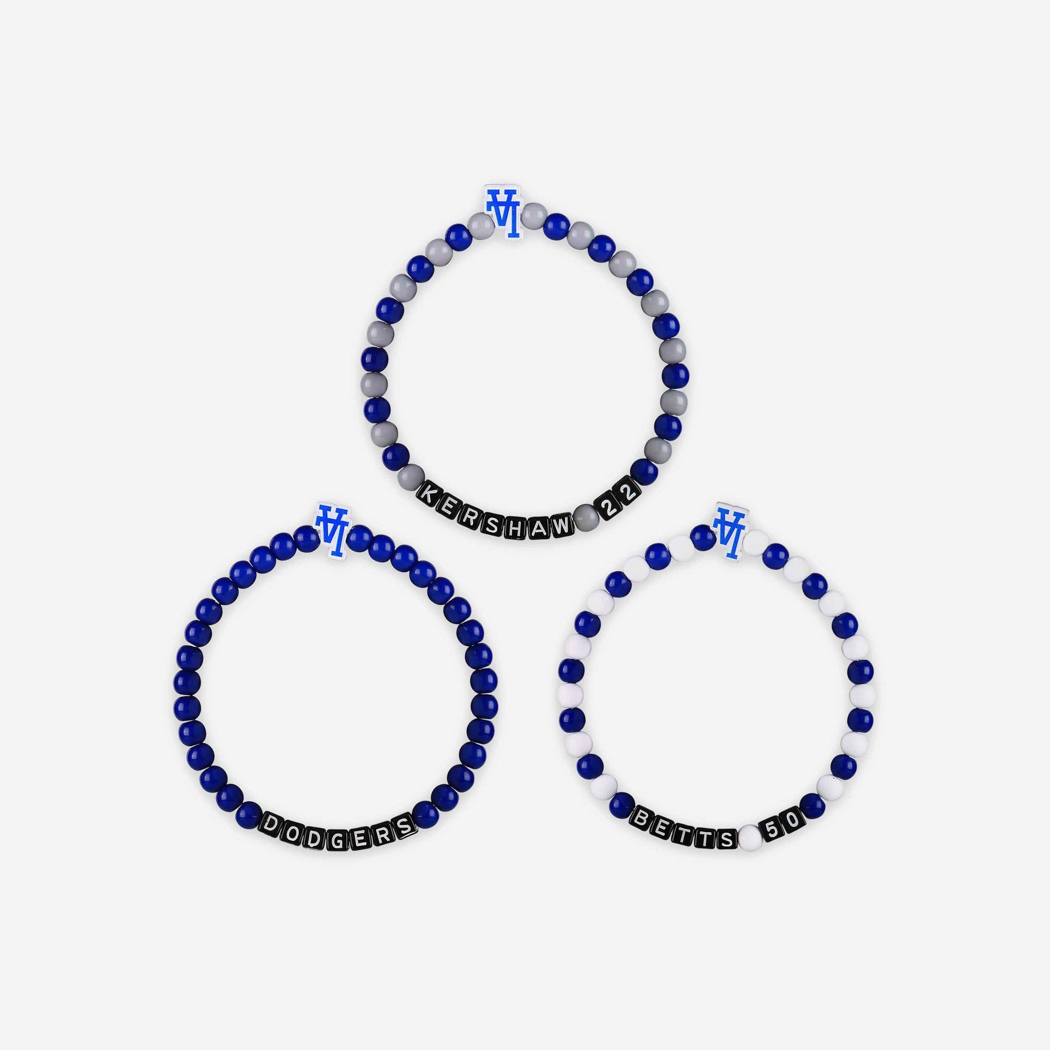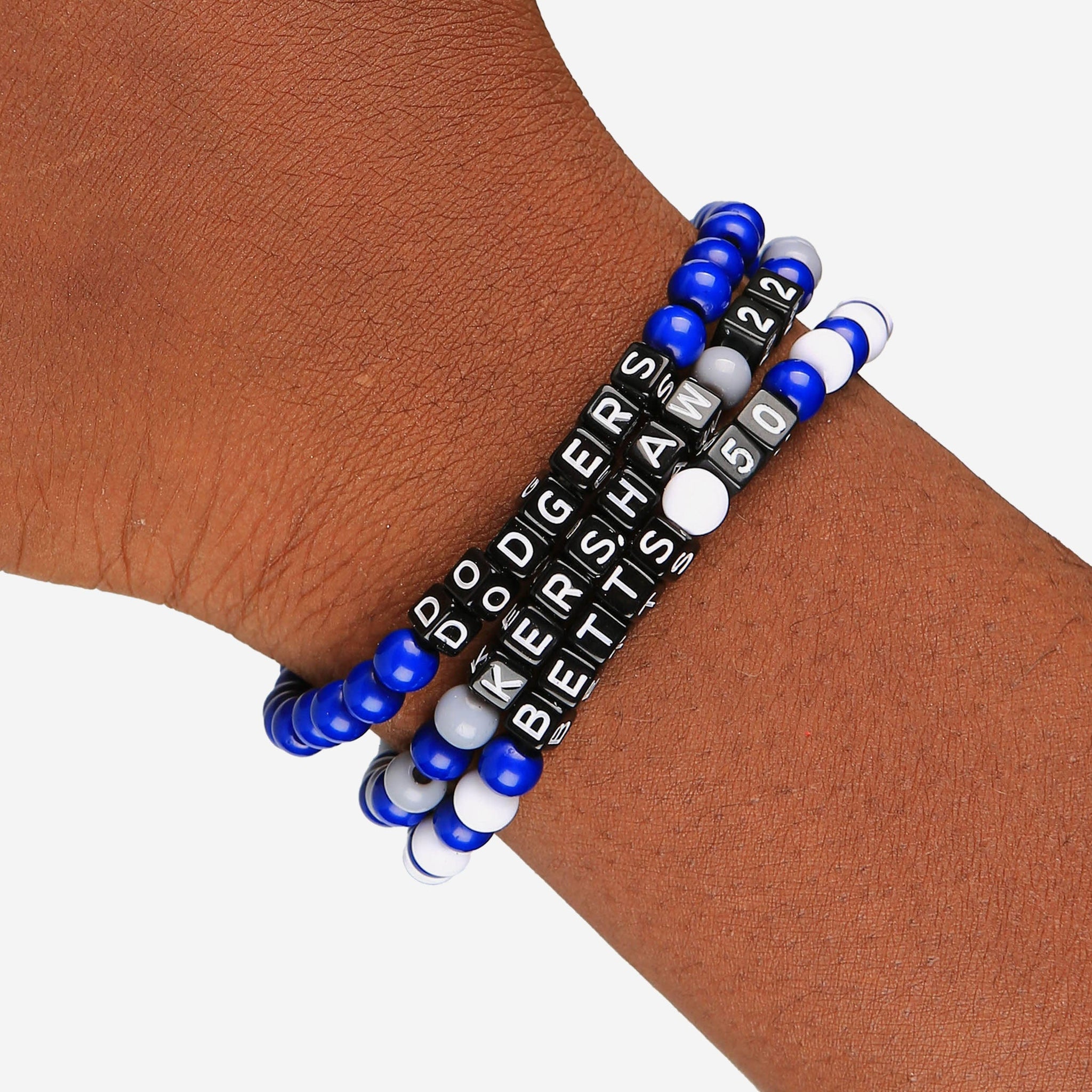 A whole new way to rep the team in style is here. Step up your fan fashion sense with this Clayton Kershaw & Mookie Betts Los Angeles Dodgers 3 Pack Player Beaded Friendship Bracelet. These matching friendship bracelets have an all-over team-colored design and team logo displays, which makes them the perfect way to show your support for the Los Angeles Dodgers on gamedays and every day in between.