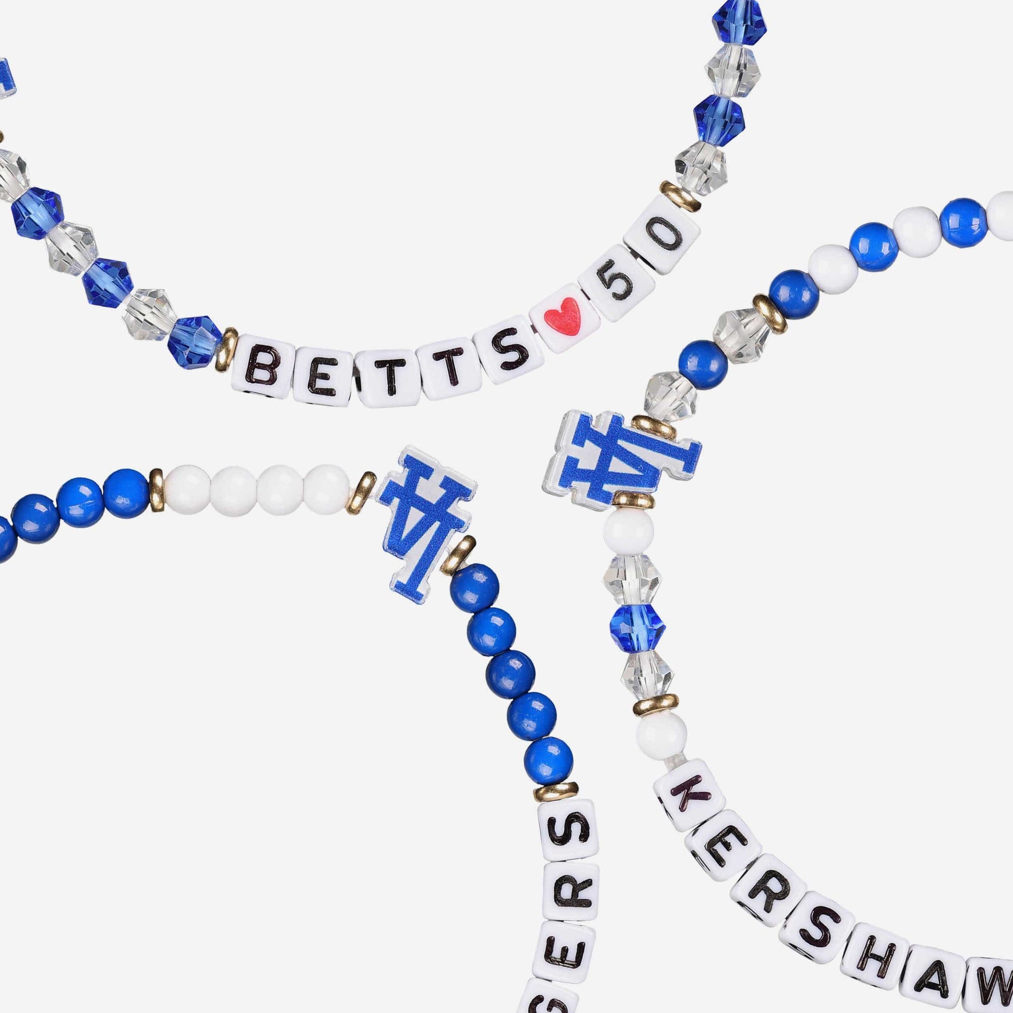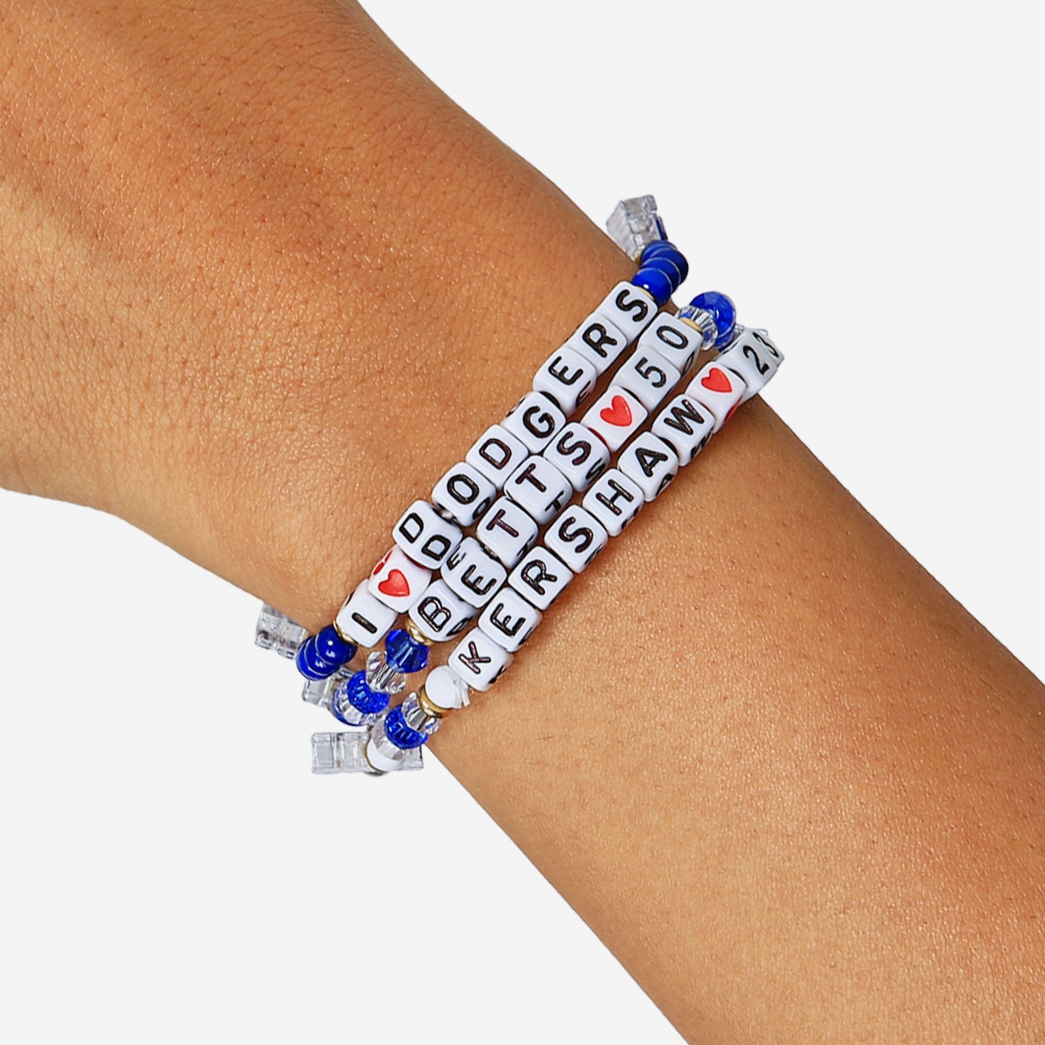 - Thematic words displayed: Letter cubes are organized on a friendship bracelet string to display team-specific words, messages, and player names that will make sure these Clayton Kershaw & Mookie Betts player friendship bracelets always have your team spirit front and center.