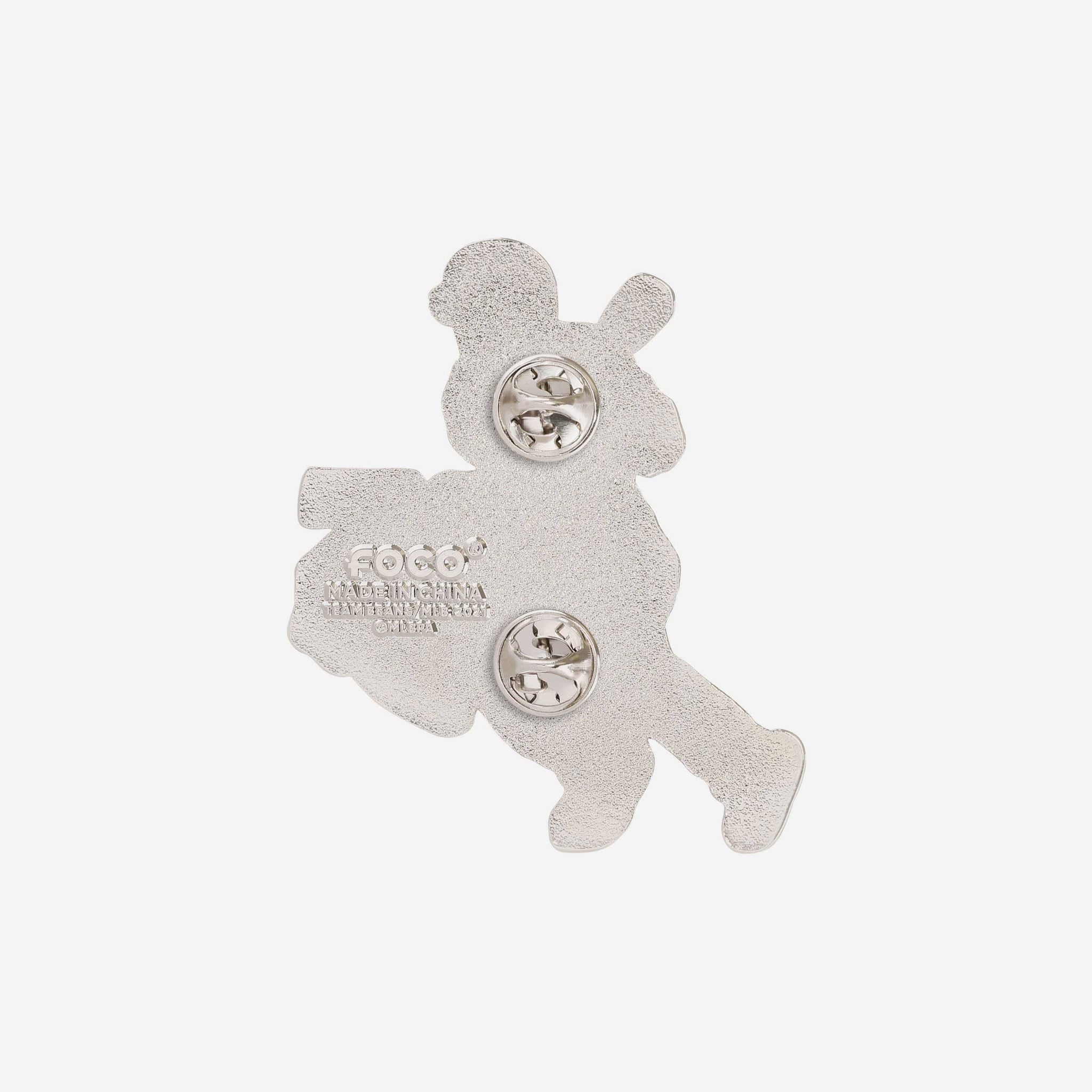 - Player pin depicts player wearing his gameday uniform in an action pose, jersey number display, and signature display