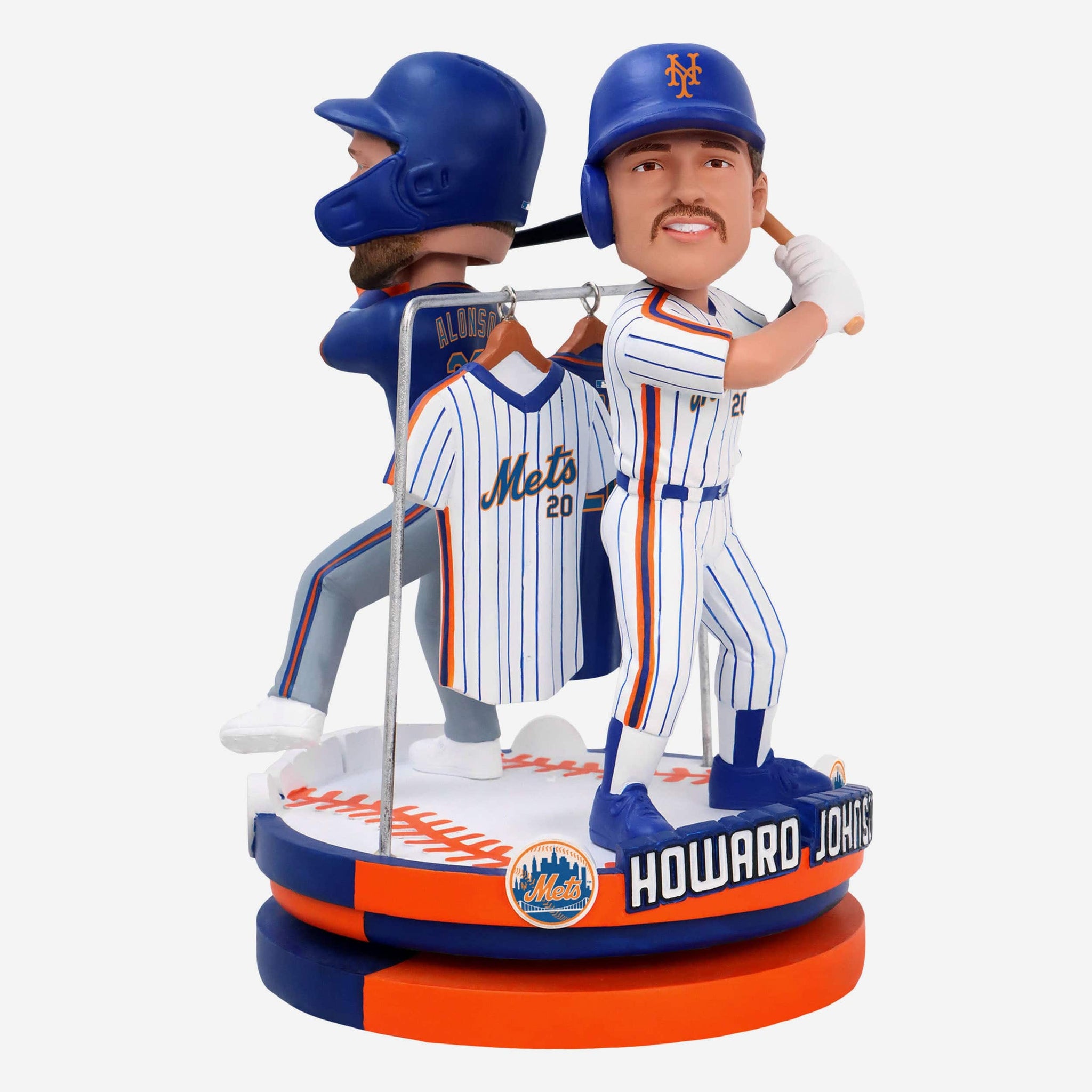 - Portrays one figure of Pete Alonso and one figure of Howard Johnson wearing their white gameday uniforms in action poses, because two No. 20’s are better than one