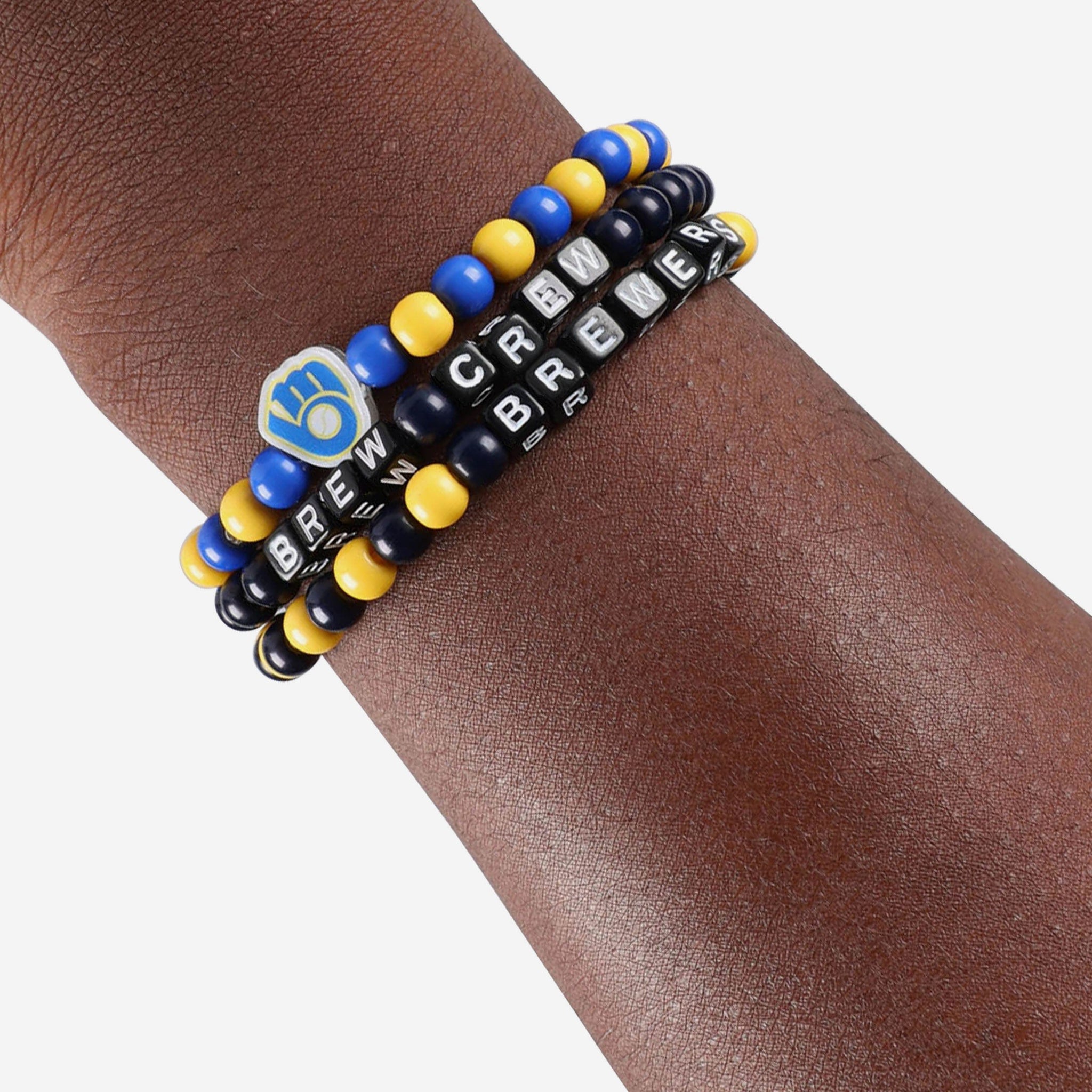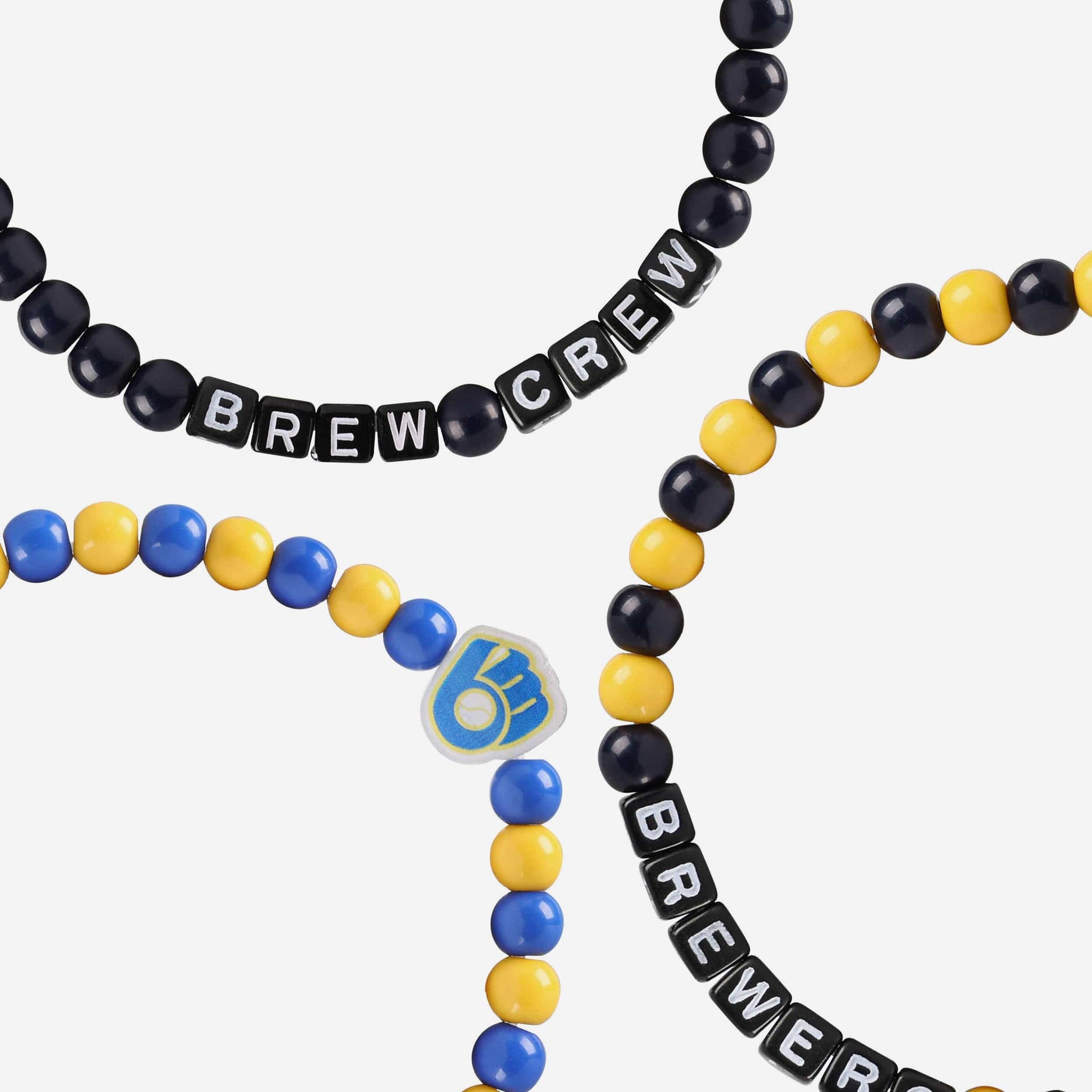 A whole new way to rep the team in style is here. Step up your fan fashion sense with this Milwaukee Brewers 3 Pack Beaded Friendship Bracelet. These matching friendship bracelets have an all-over team-colored design and team logo displays, which makes them the perfect way to show your support for the Milwaukee Brewers on gamedays and every day in between.