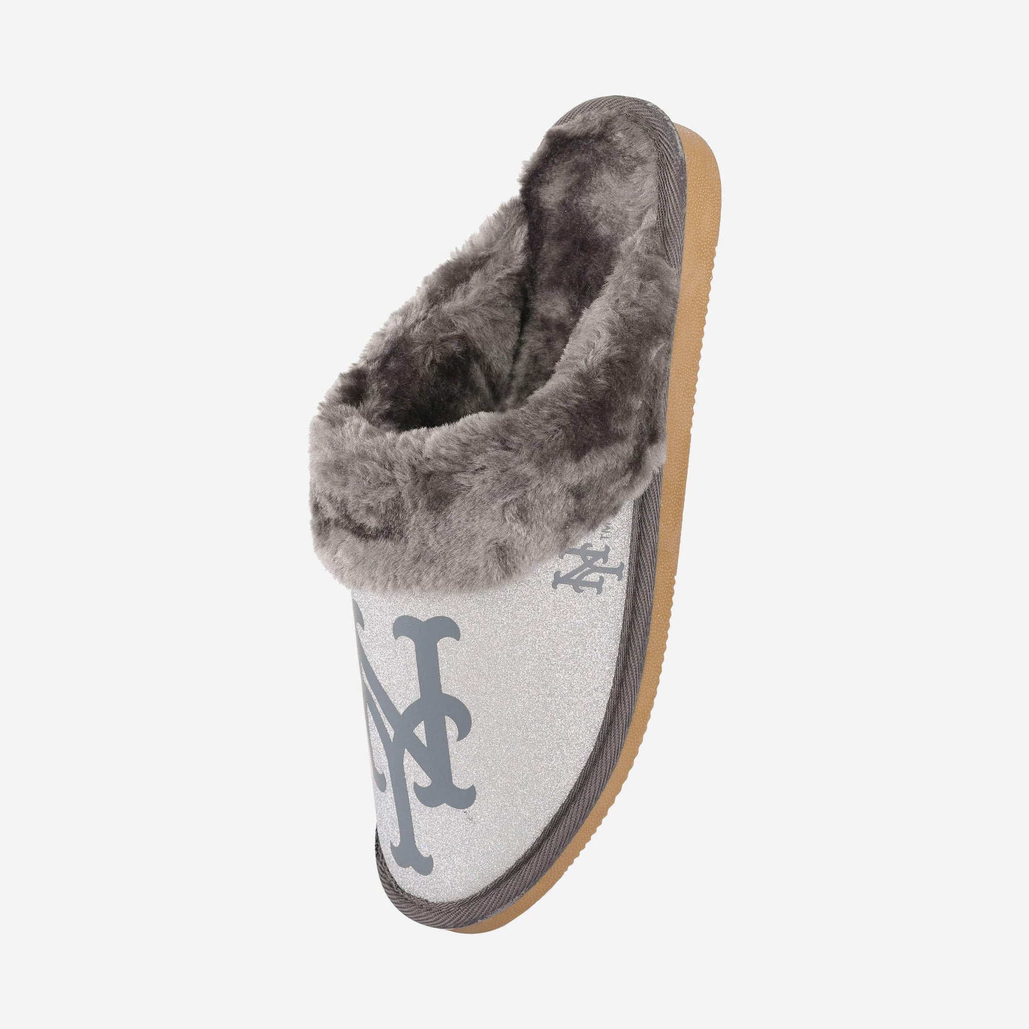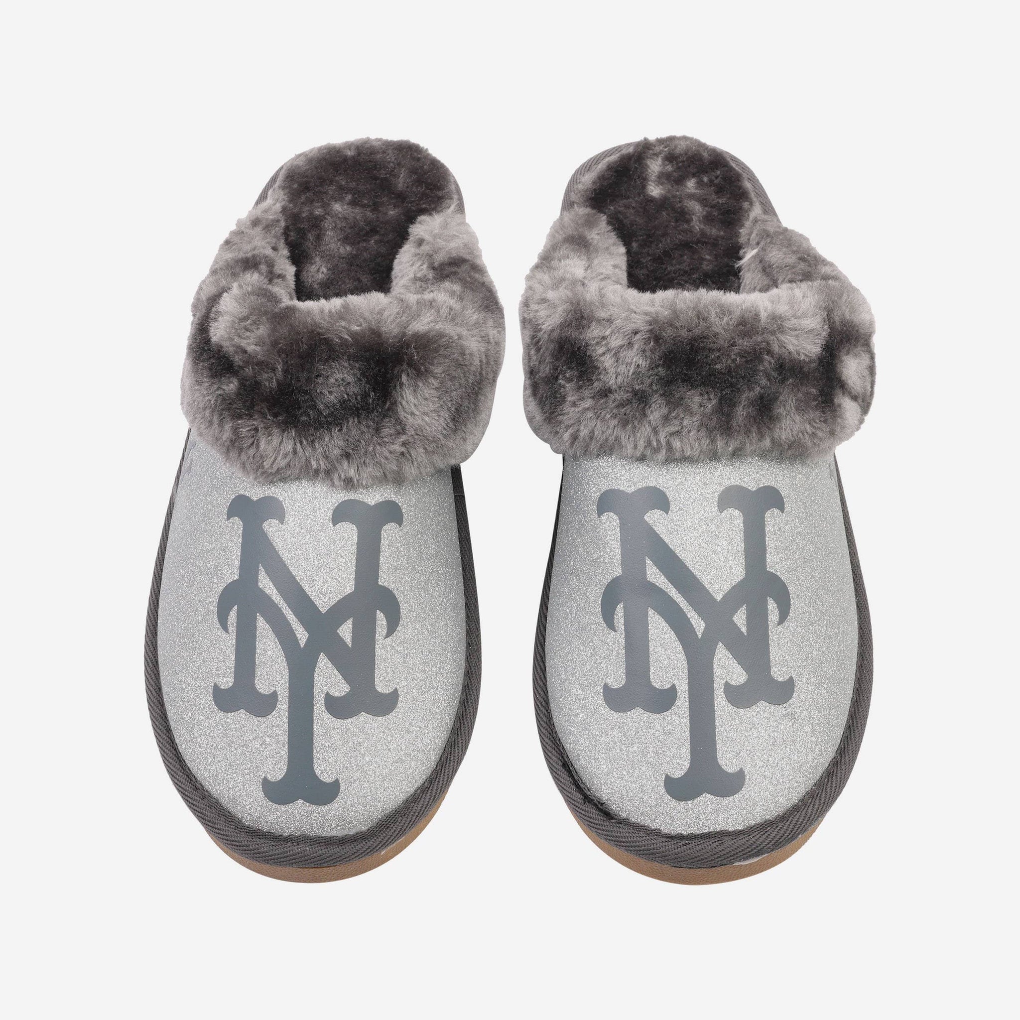 New York Mets Womens Glitter Open Back Fur Moccasin Slipper FOCO S - FOCO.com