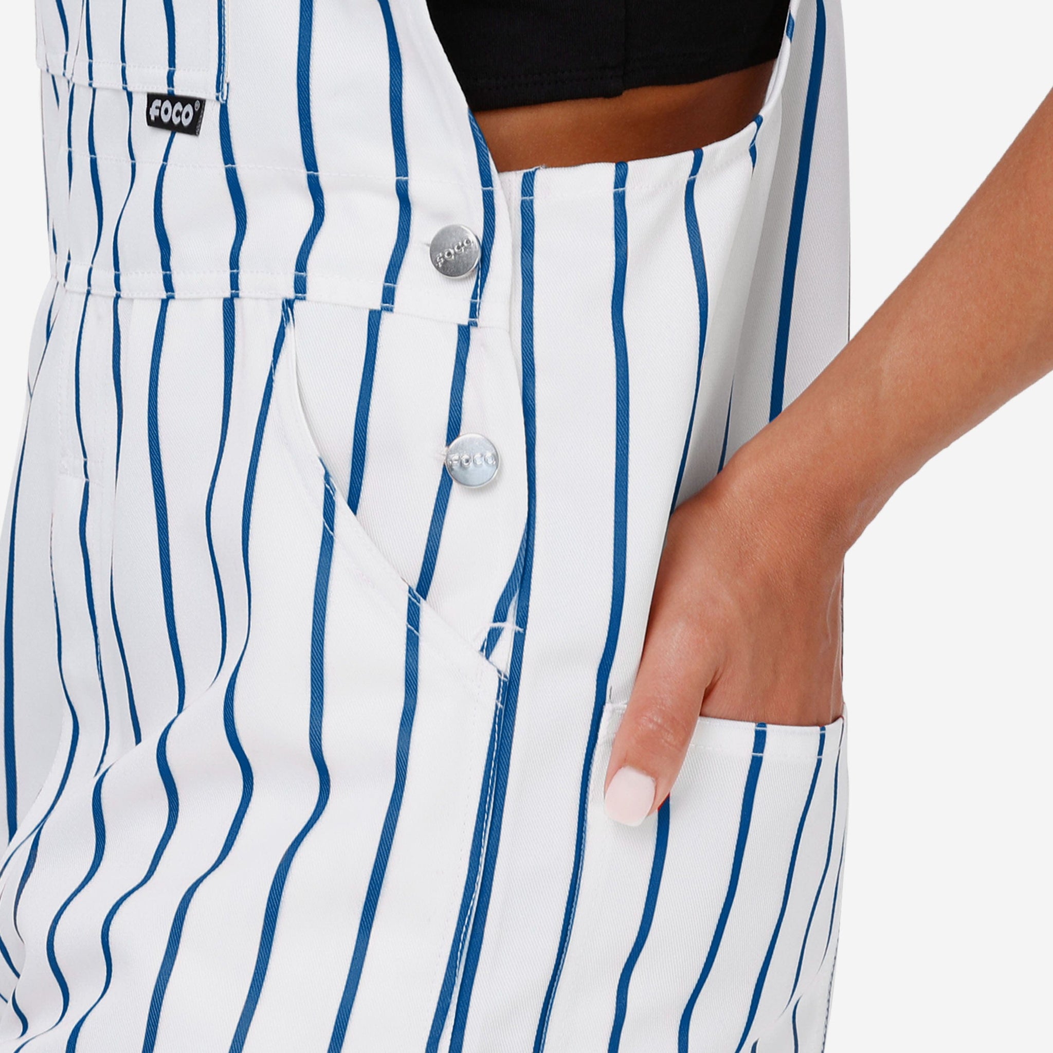 New York Mets Womens Pinstripe Bib Overalls FOCO - FOCO.com