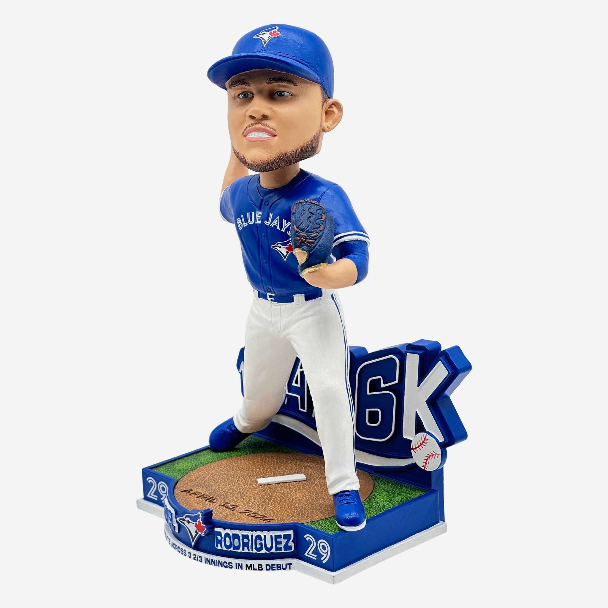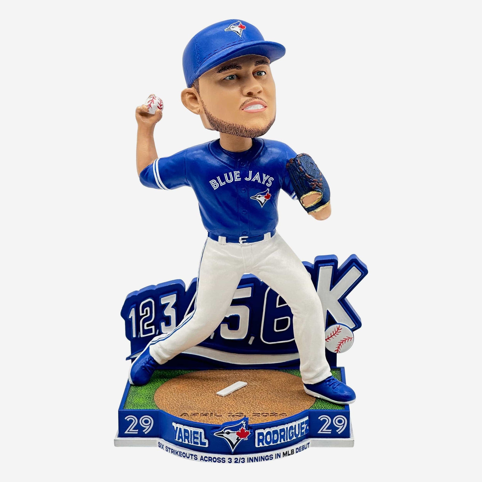 The final stats: Six strikeouts in 3 and 2/3 innings of one run ball. Make it a debut to remember with the Yariel Rodriguez Toronto Blue Jays Rookie Debut Bobblehead!